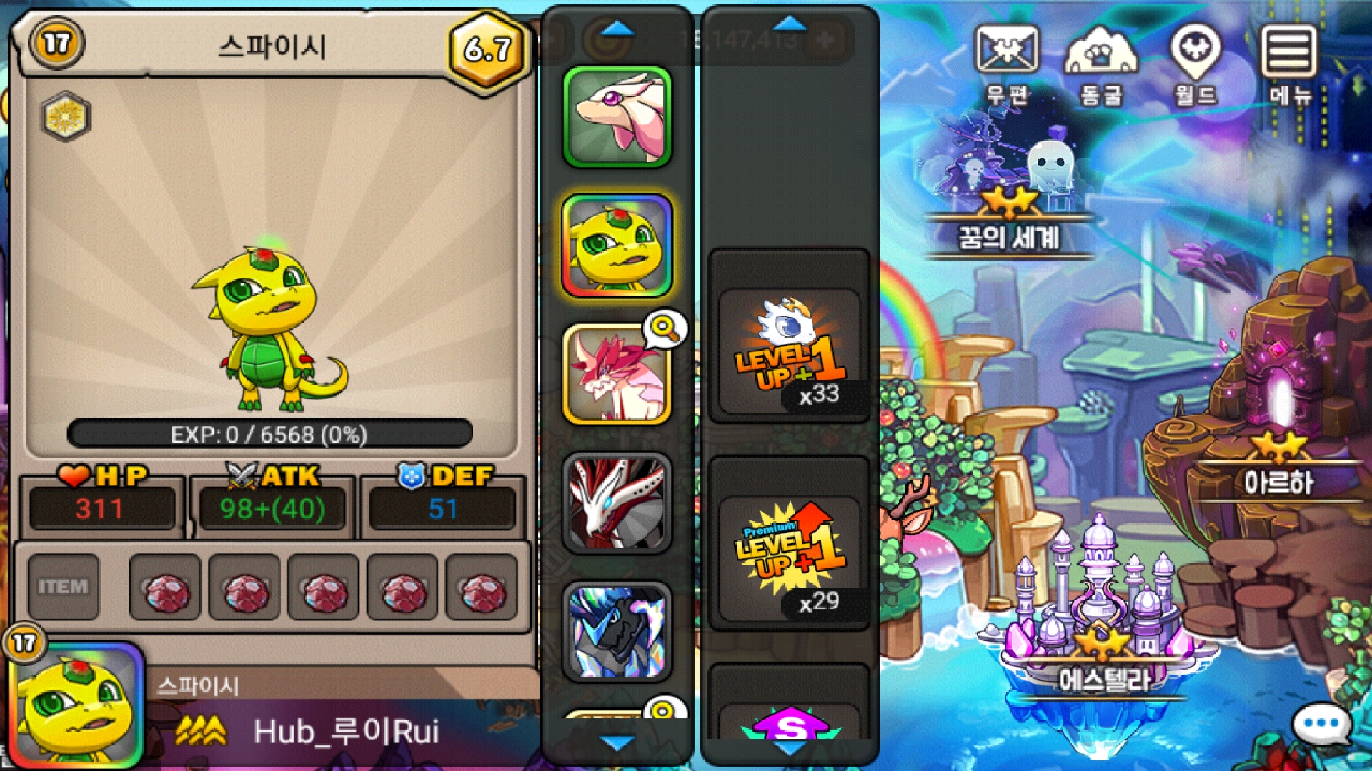 10렙에서 17렙 됬어요