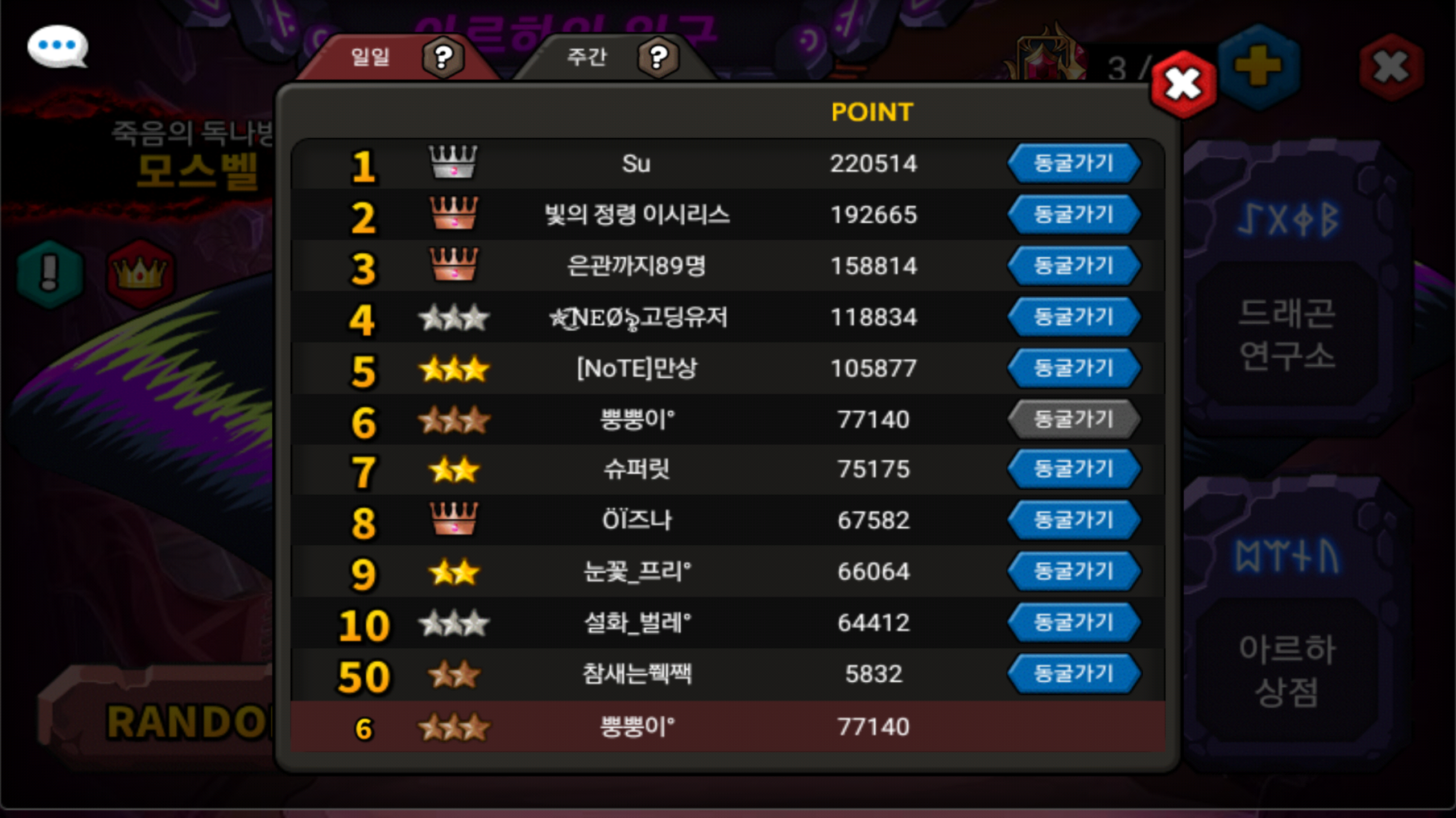 10위 안에서 혼자 동별!!