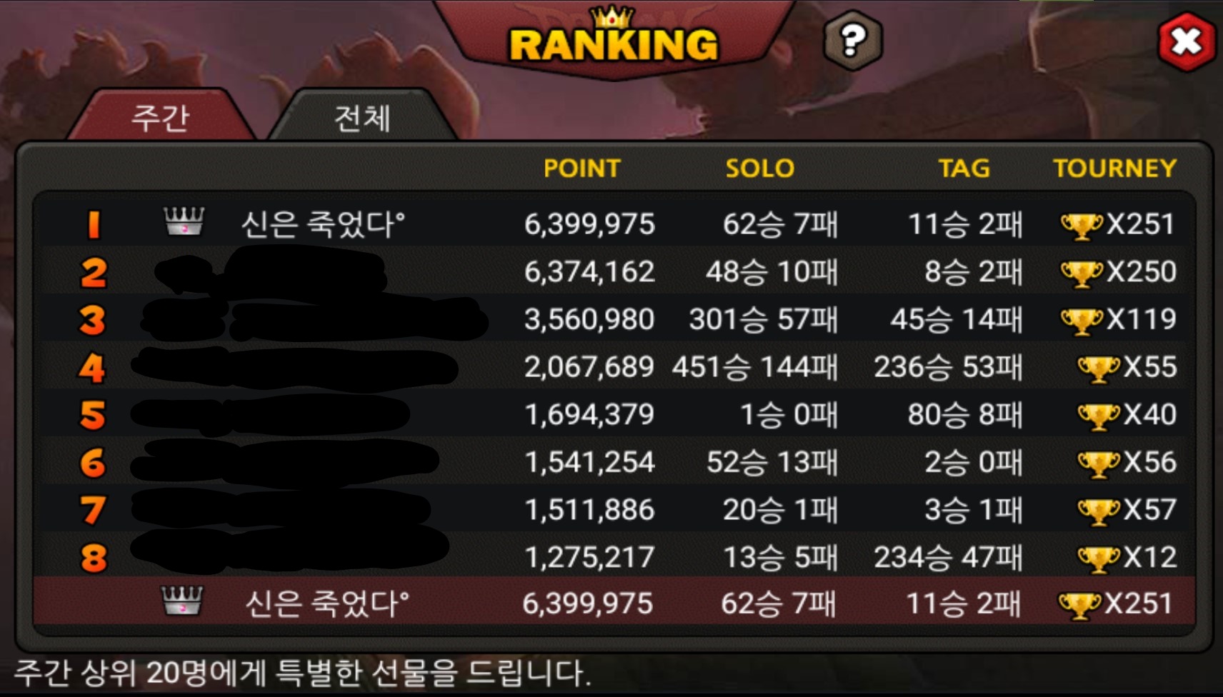 주랭 1위 탈환