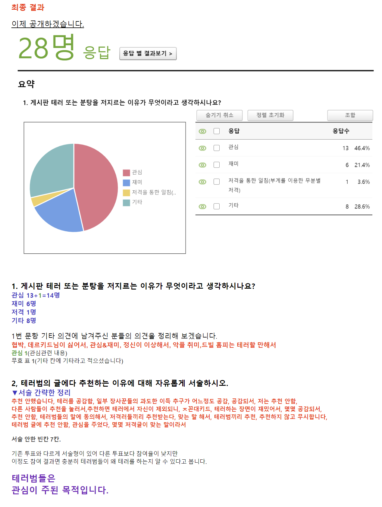 남들 따라서 테러용 아이디를 만들어 글 하나 올렸더니 이게 재미가 되어 가는 거죠.