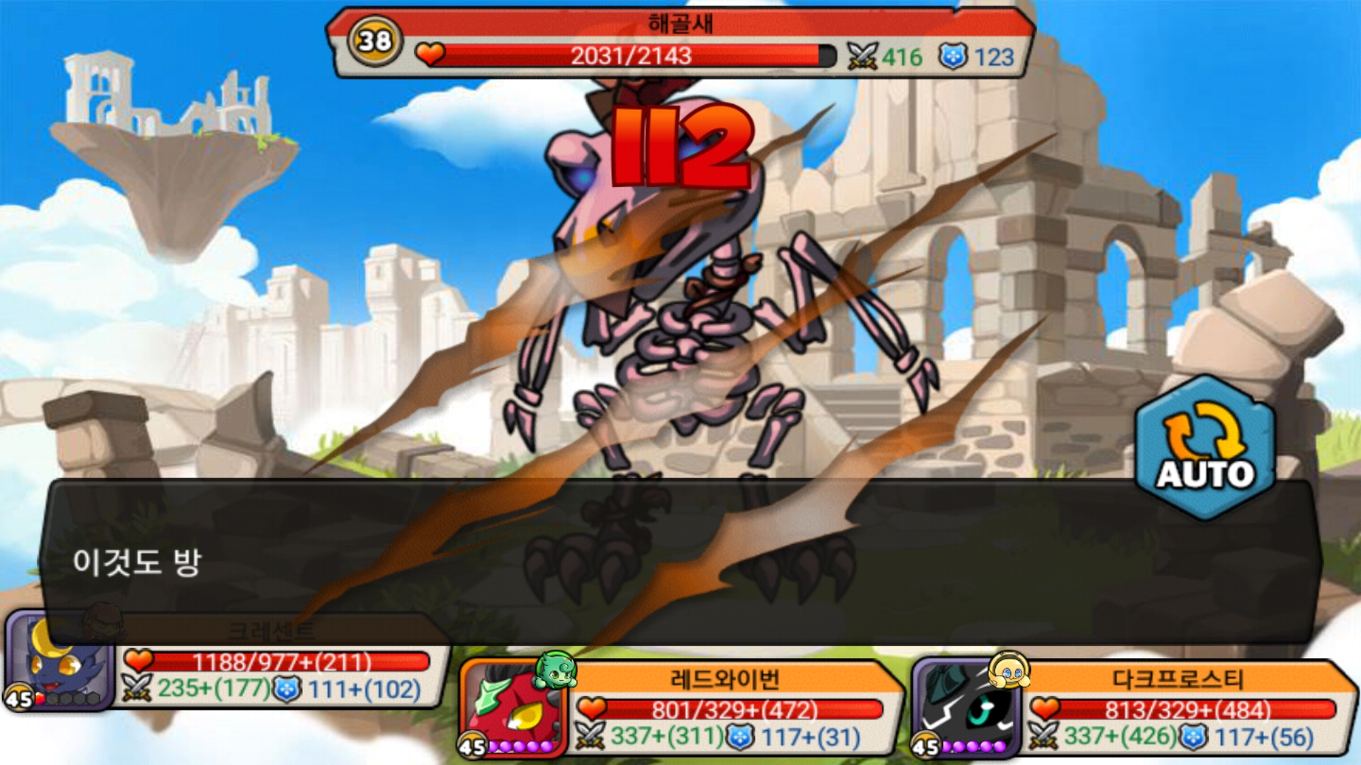 자동탐험에선 버서커 버프, 흑마법사 버프 능력치 증가가 안 되서 천천히 때려잡아야 합니다.