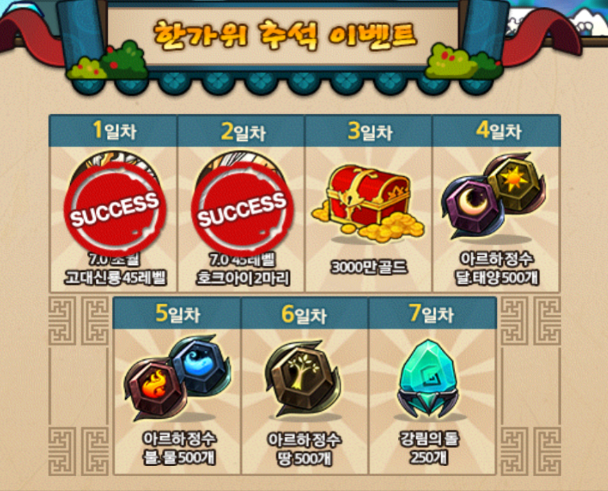 한가위 추석 이벤트 출석체크 보상 스포