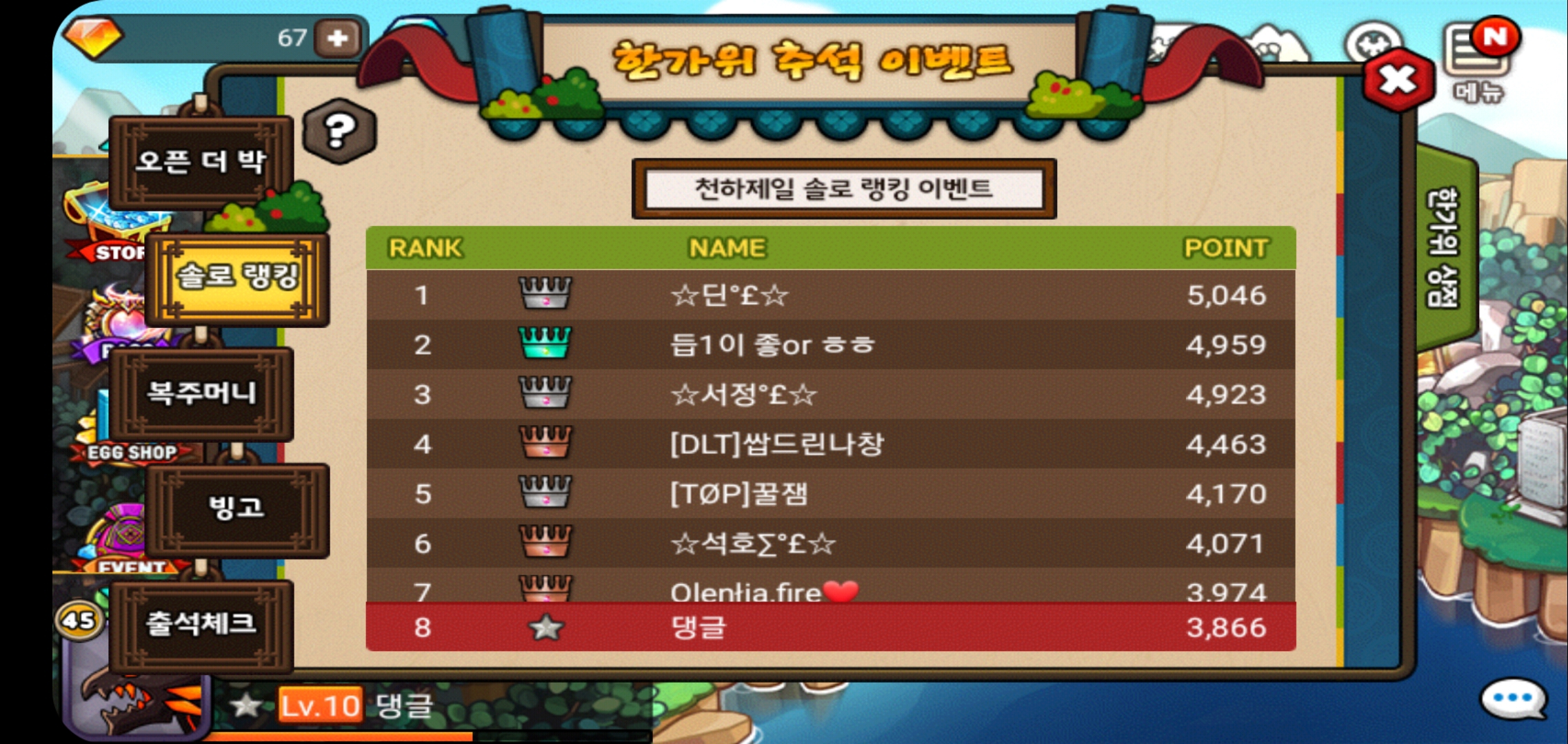 오늘의 솔로랭킹