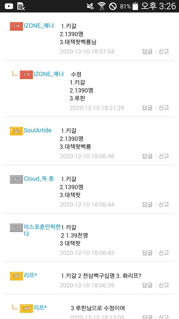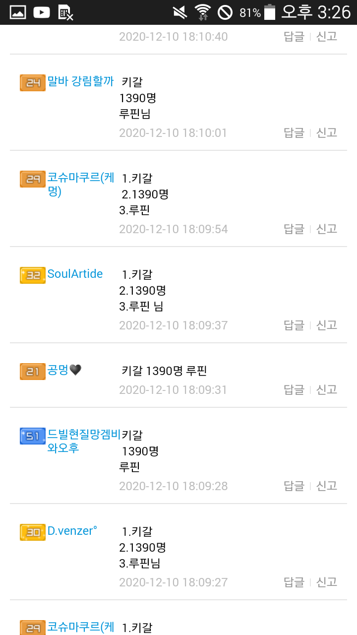키갈님이벤 1등SOUL님에대해 이의제기