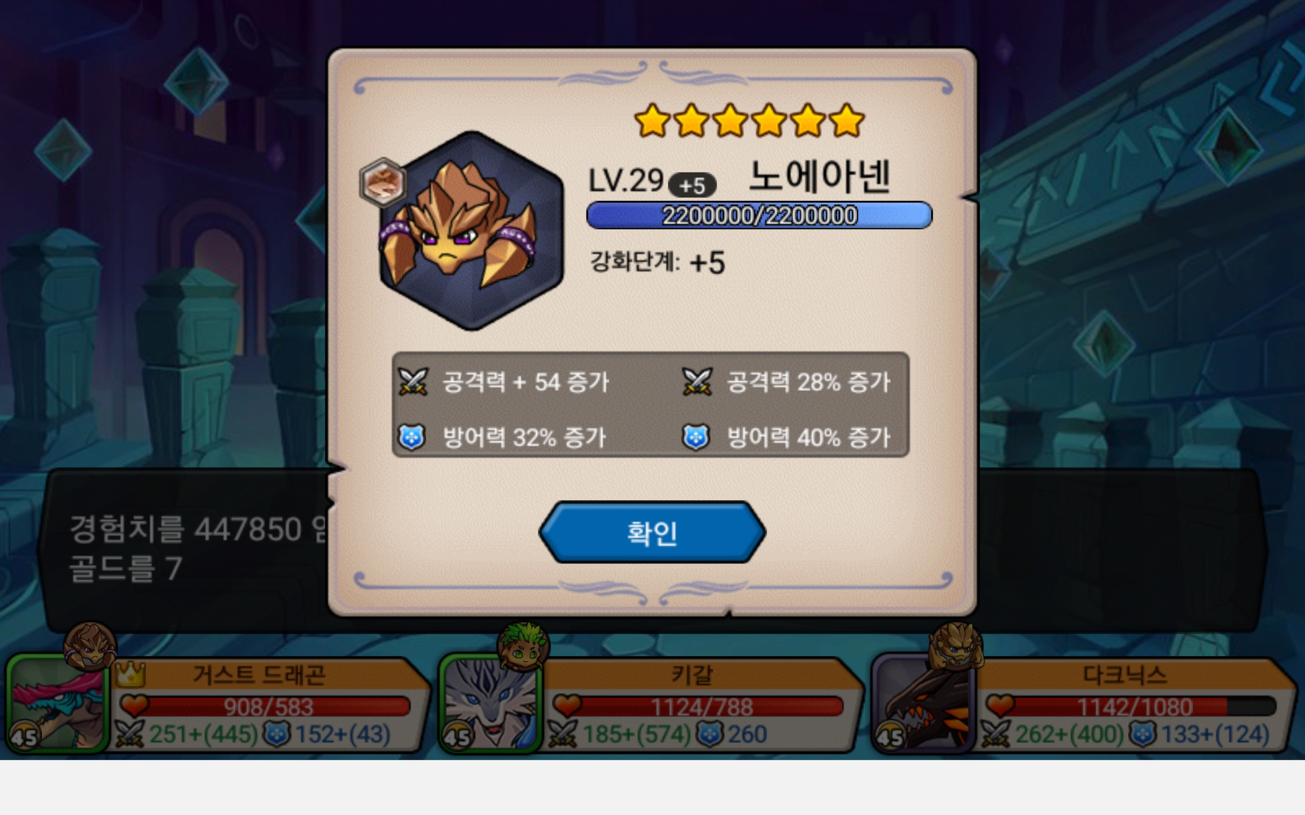 정령 육성 완료