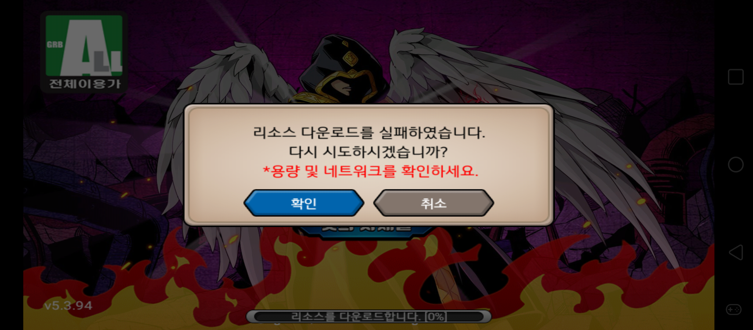 WIFI가 5칸이고 용량은 널널한데 계속 저게 떠요. 다른 겜이나 앱들은 다 잘되는데....도와주세요 열어분