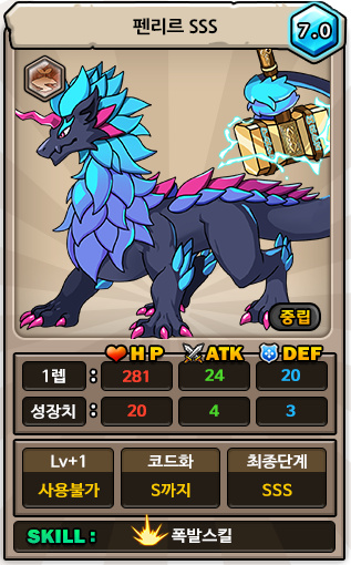 펜리르는 예전에 하이브로가 만들었는데 서비스 종료한 게임, 몬스터 빌리지 타이틀에 간판으로 나오는 늑대처럼 생긴 몬스터였습니다.