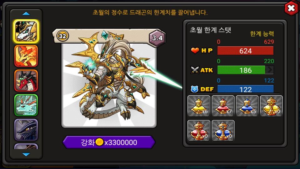작은거만 계속 먹여서 그런지 등급이 저런데 드는 비용이..ㅋㅋㅋㅋㅋㅋㅋ