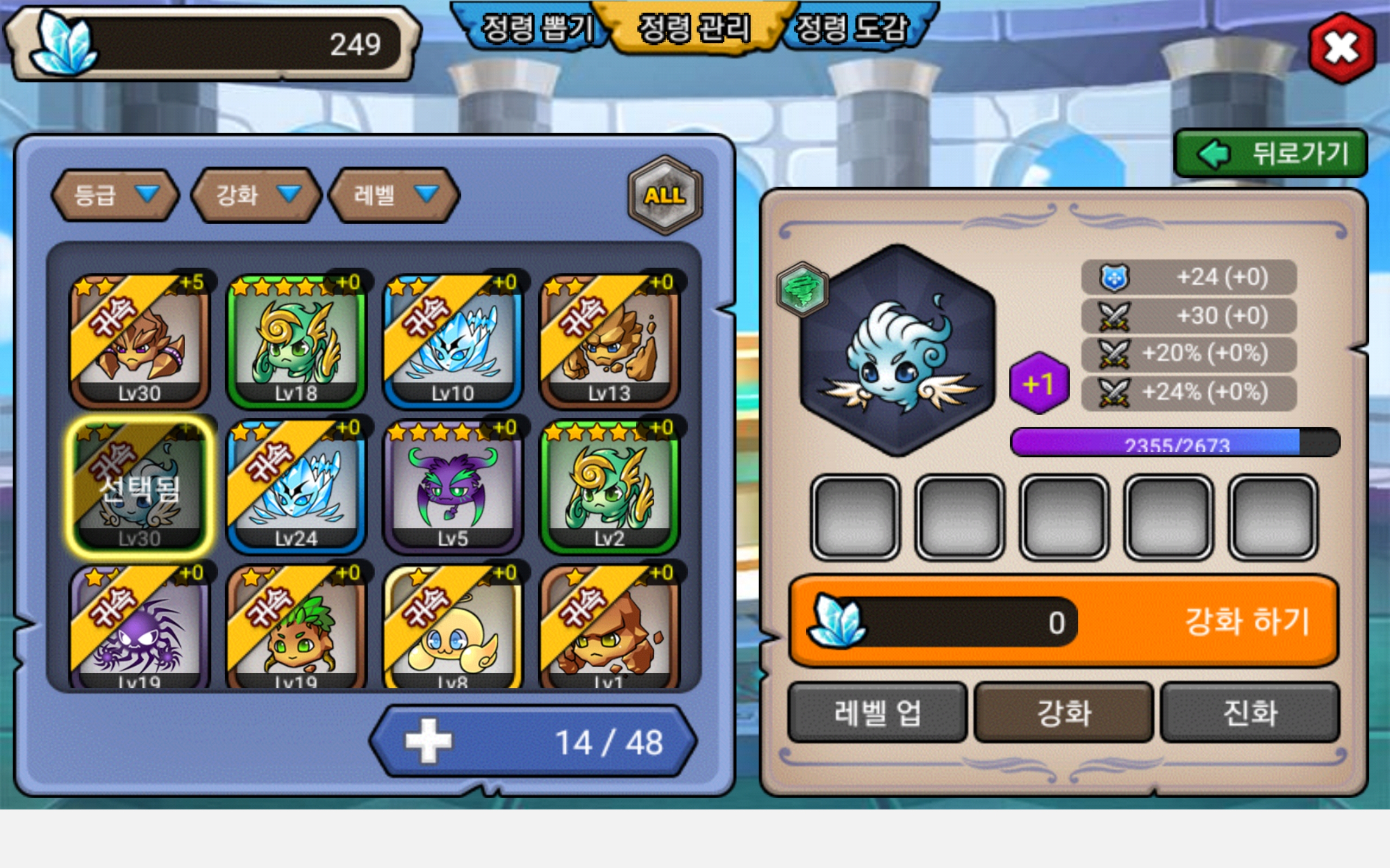정령이 없어서 정령 강화 못하는 현실...