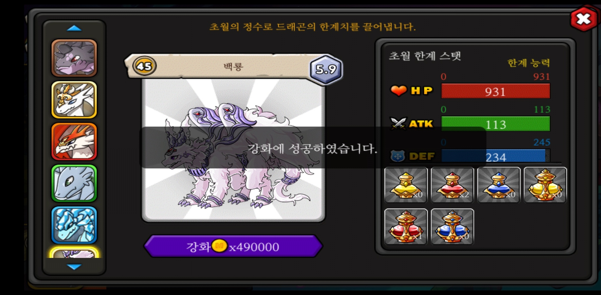 보라수정이 없어서 작은초정으로 체력 맥스 찍.