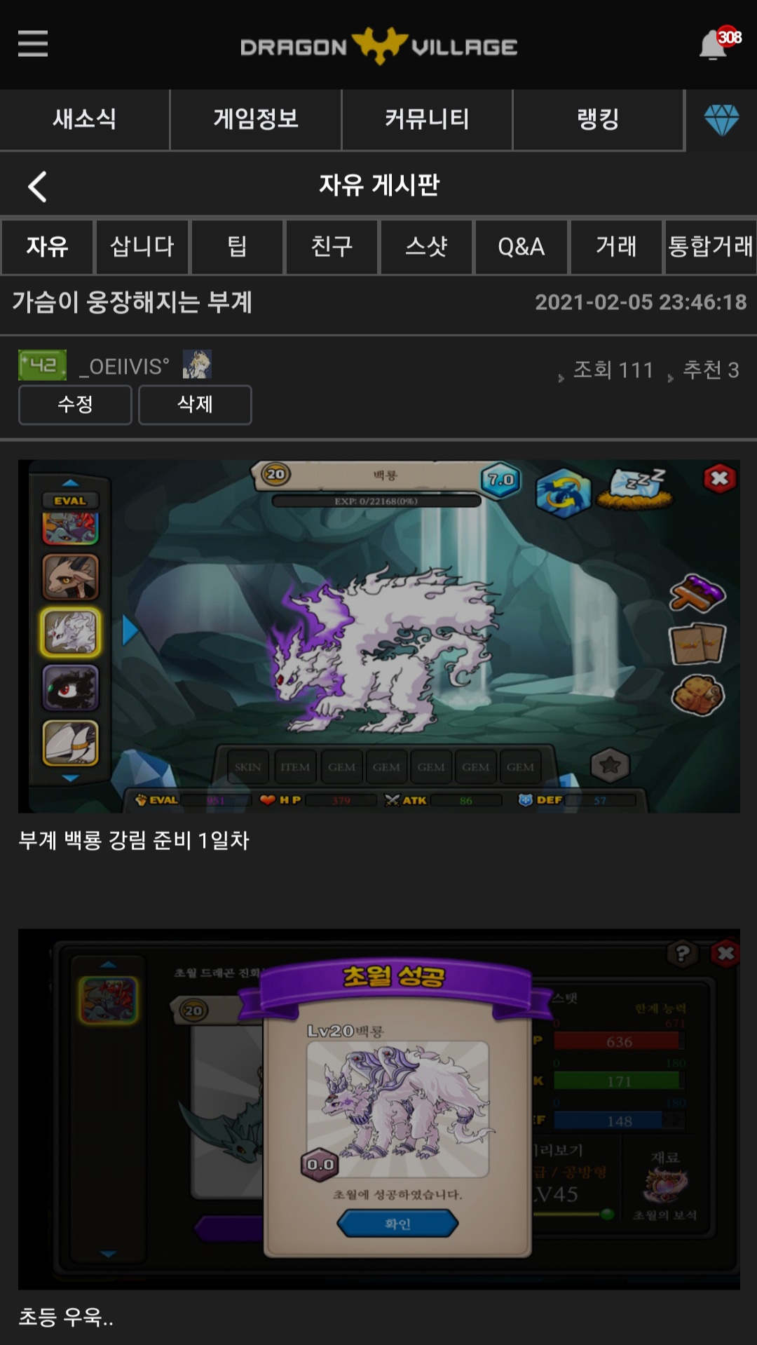 아래 글 그 부계 백룡 맞습니다