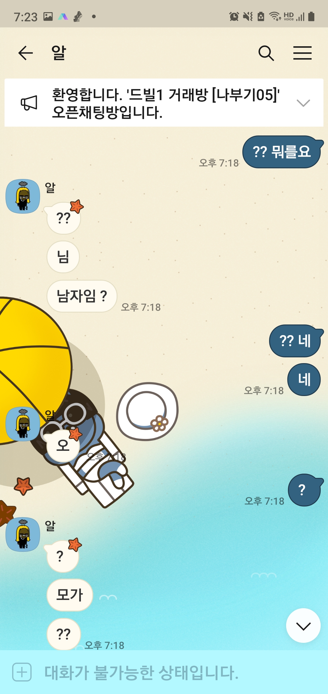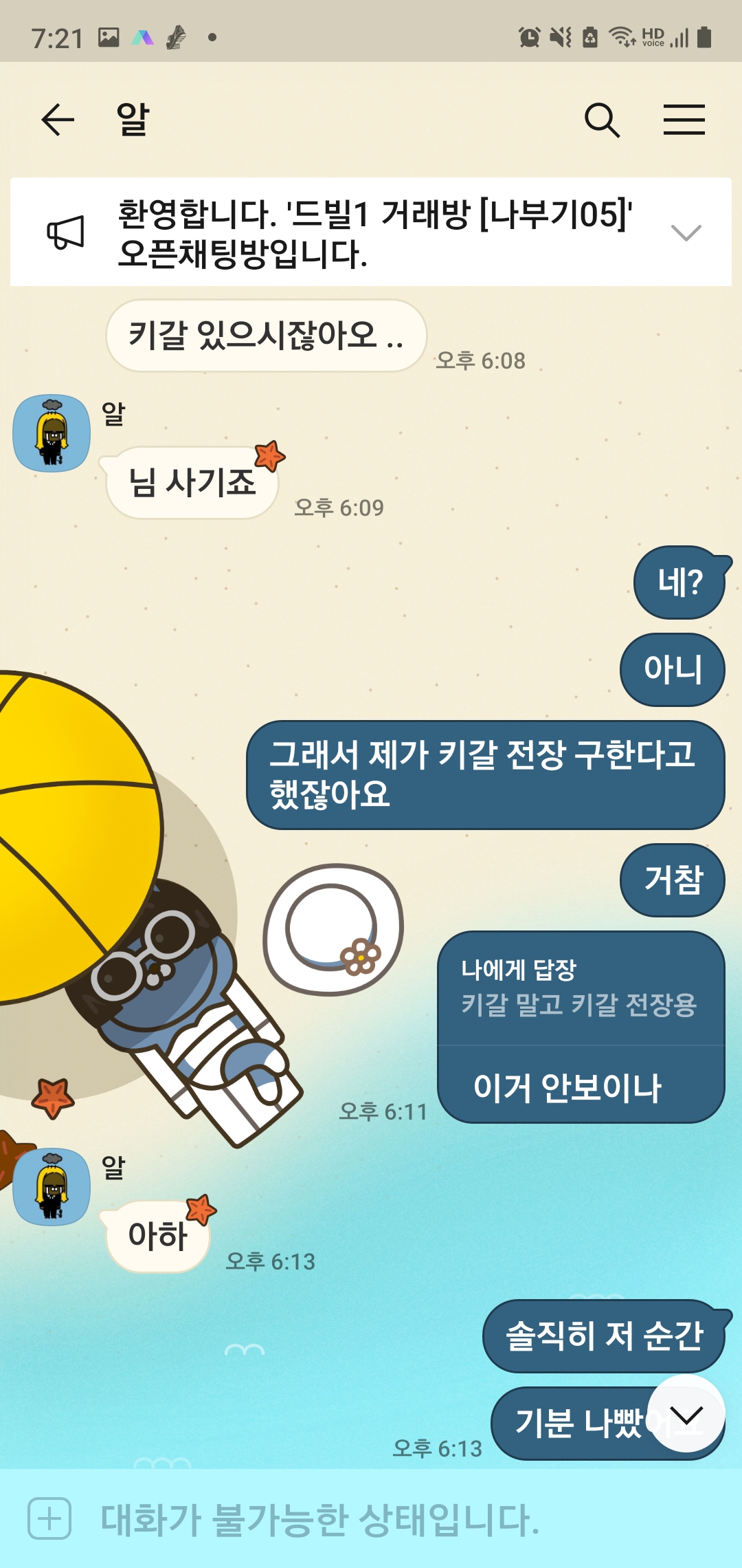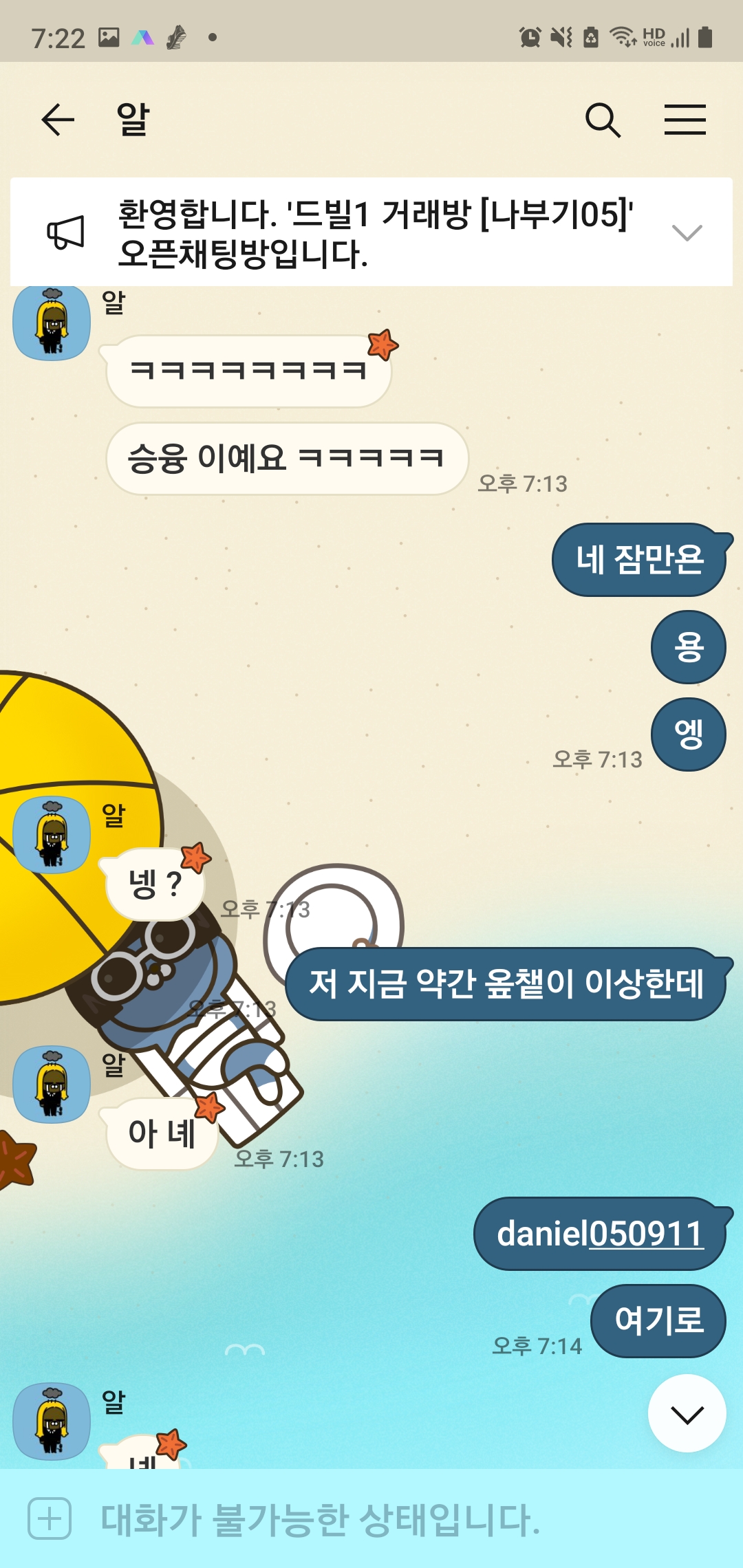 ㅋㅋㅋ 순서 모르겠다 어쨌든 드빌 닉은 알아냈는데 홈피 닉이랑 카톡은 못 알아냈네요.. 중간에 적반하장 ㅋㅋㅋㅋ