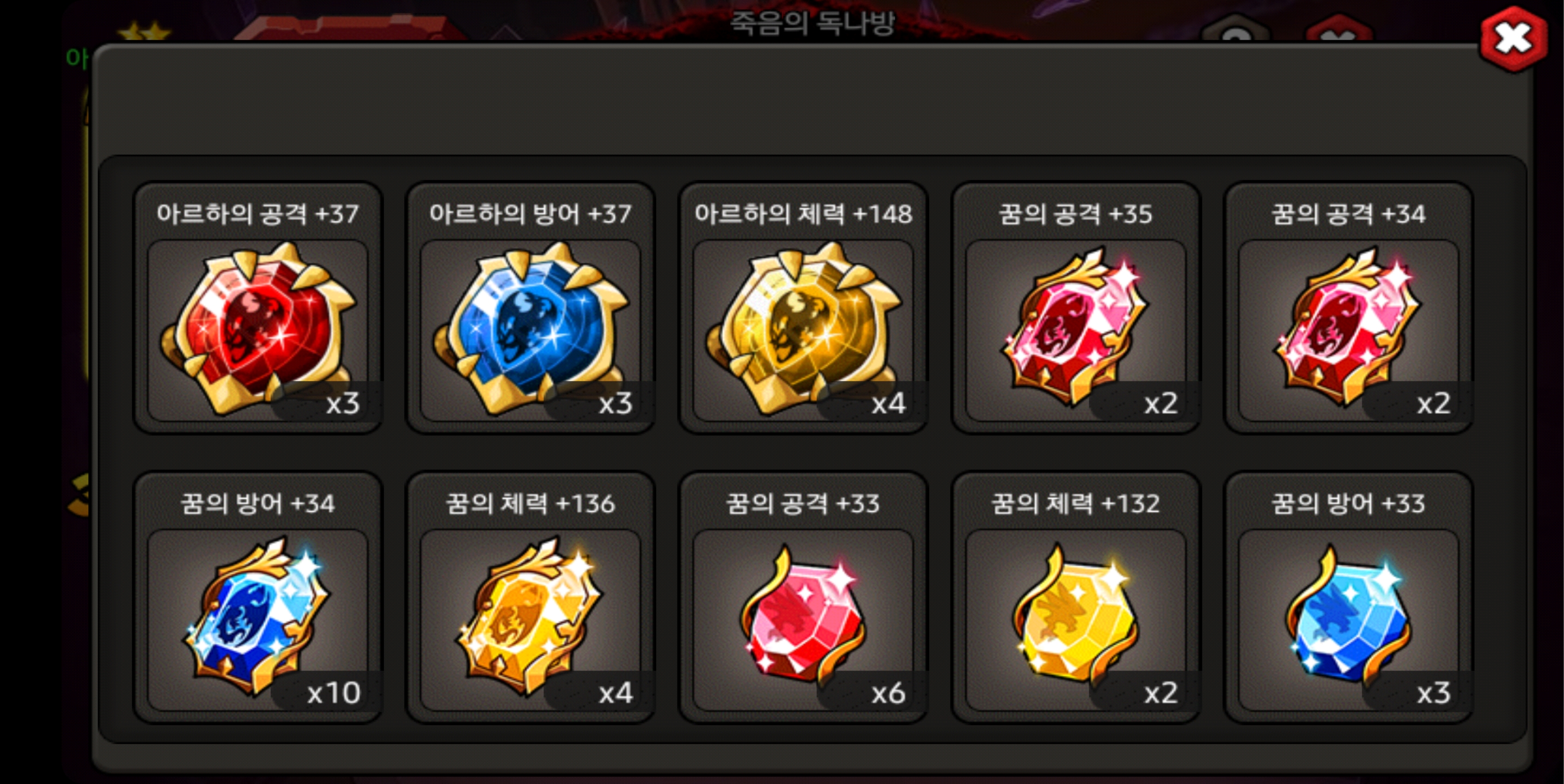10개 달성. 빛축 때는 더 왕젬 수급해서 20개를 향해 가보죠