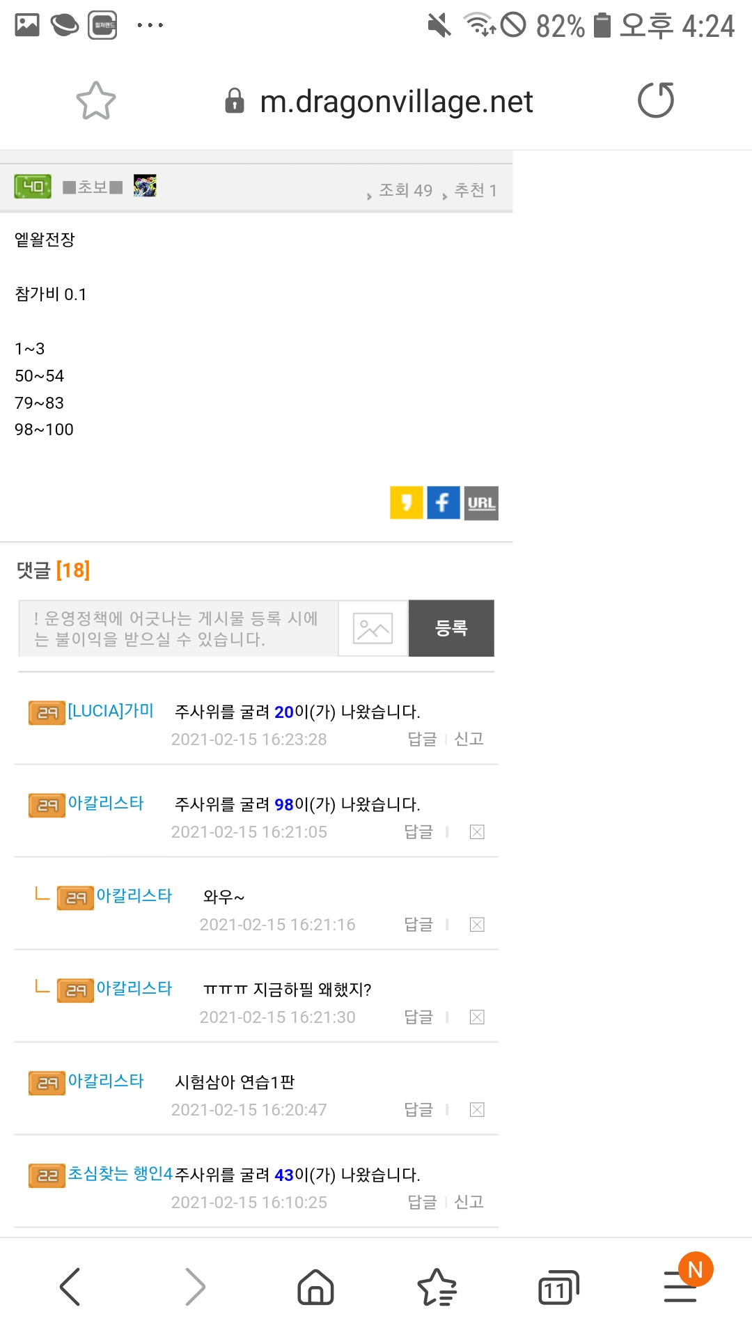 해당 댓글을