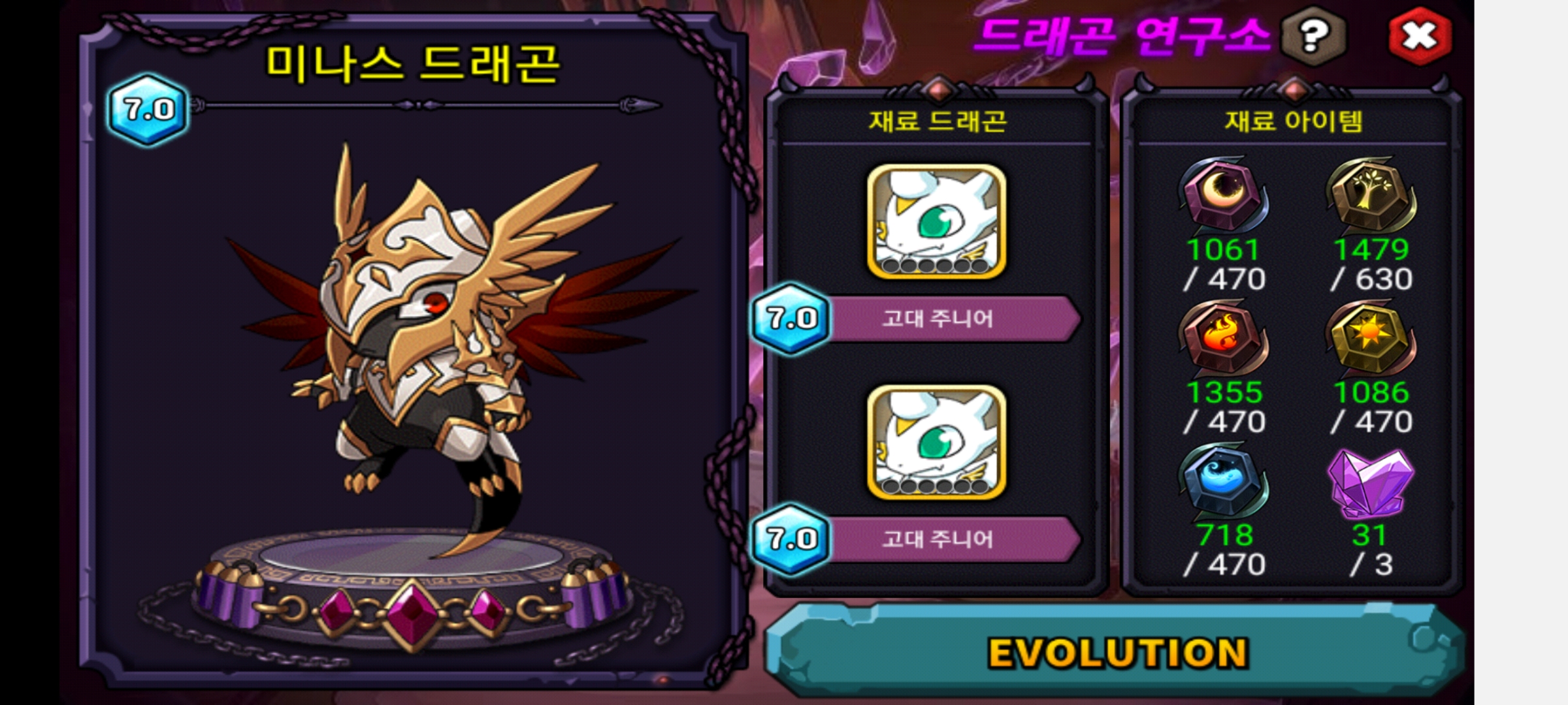 캡업 거의 300개 썼습니다... 재료만.. 오늘 1마리 캡슐1렙에서 각성 만듬..대충 9월 초반에 얻고 진각이네요^^이번주는 드슬좀 패러 갑니다