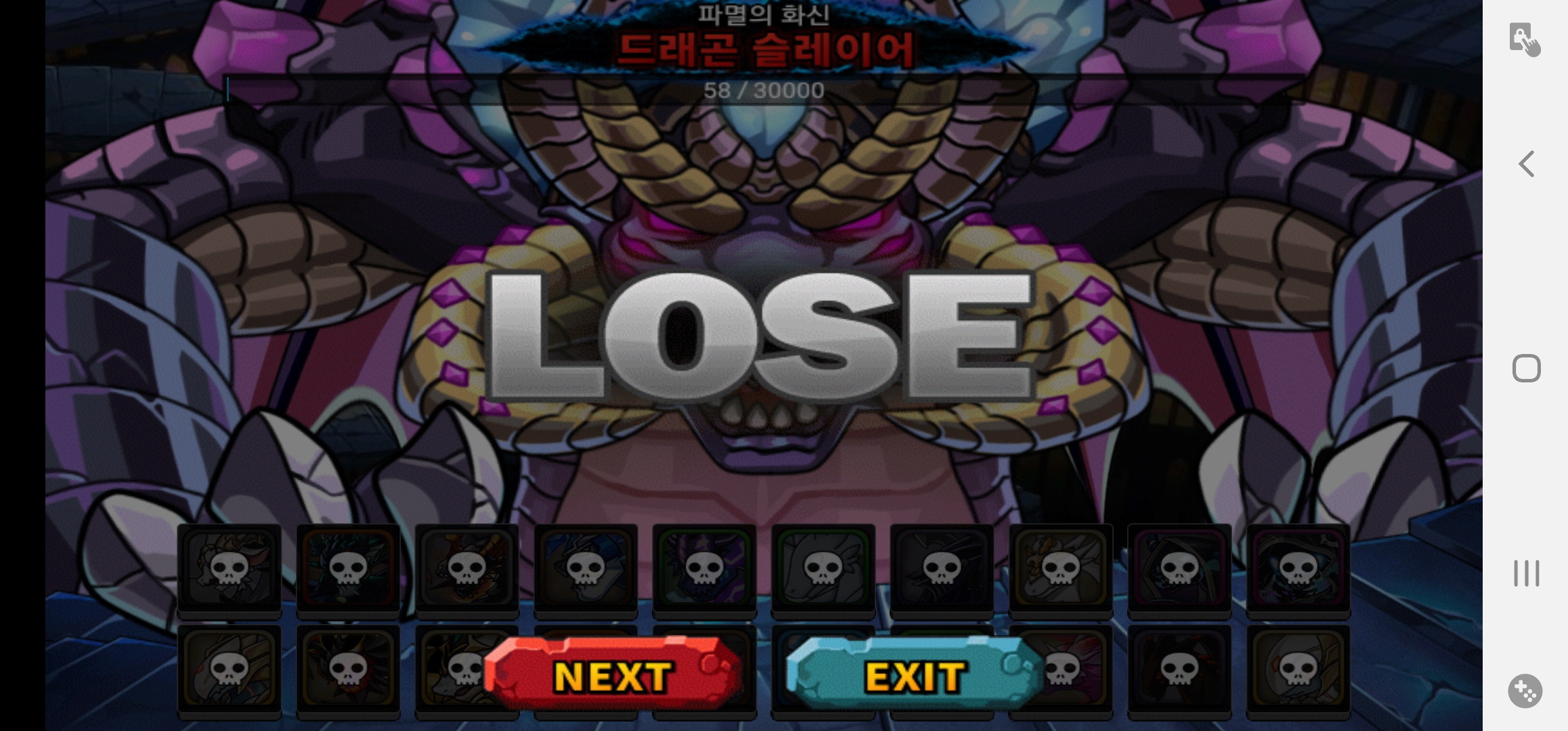 아 처음으로 드슬을 만났습니다ㅠㅠ 못 깰줄 알았는데 정말 못깨더군요....ㅋㅋㅋ 한대만 더 때리고 죽지...ㅠㅠ 그래도 나름 첫 드슬 만난거에 감사해야겠습니다. 다음에 만났을땐 꼭 이길수 있기를...