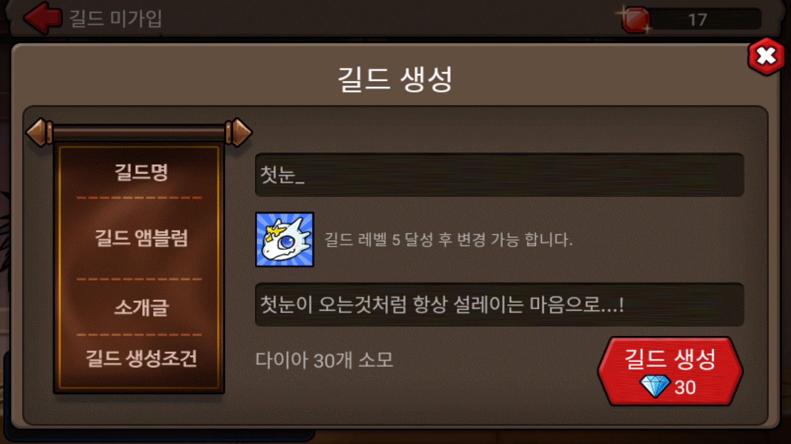 설레이는 마음으로 다시한번 길드 만들었습니다