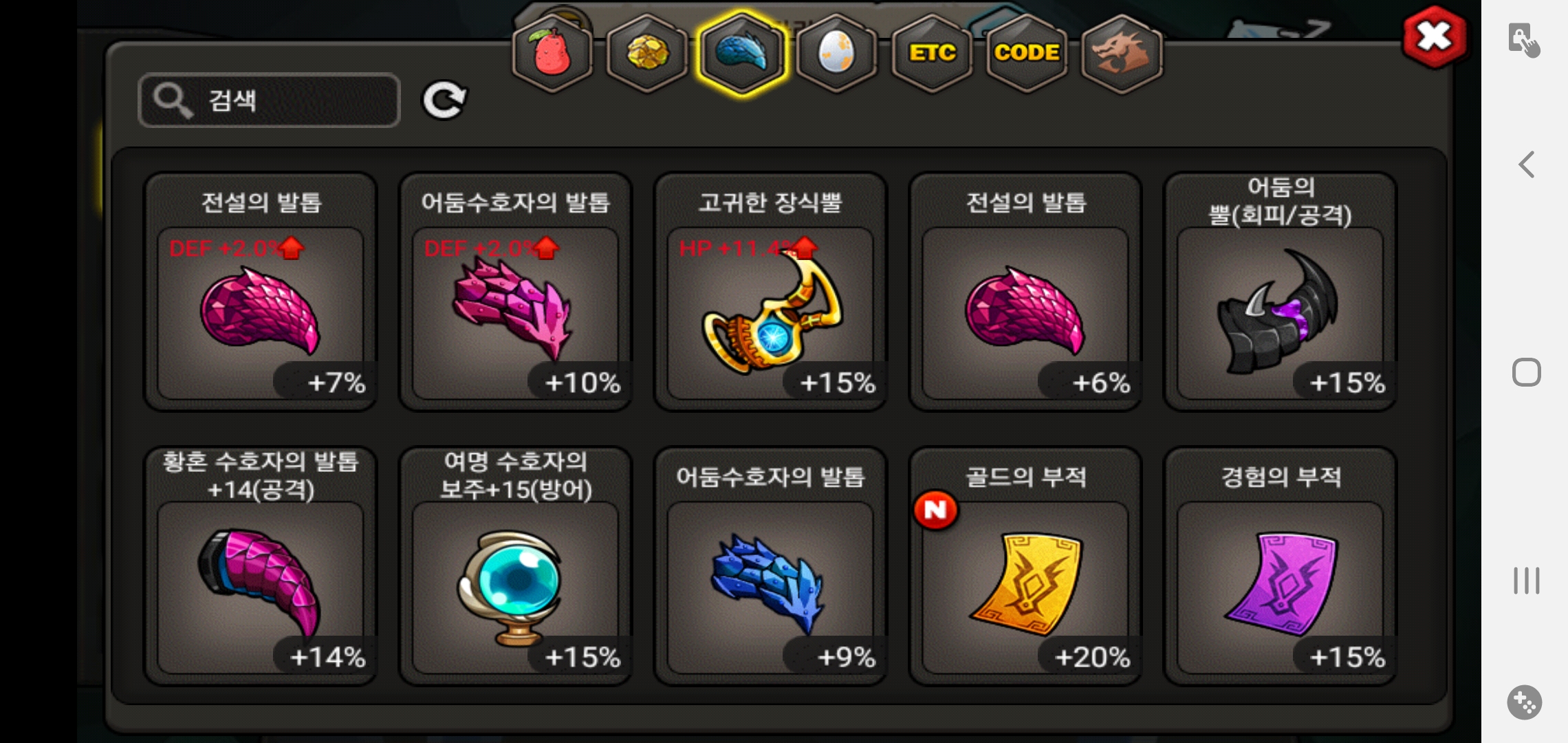 수호자의 발톱,보주,어둠의뿔이요