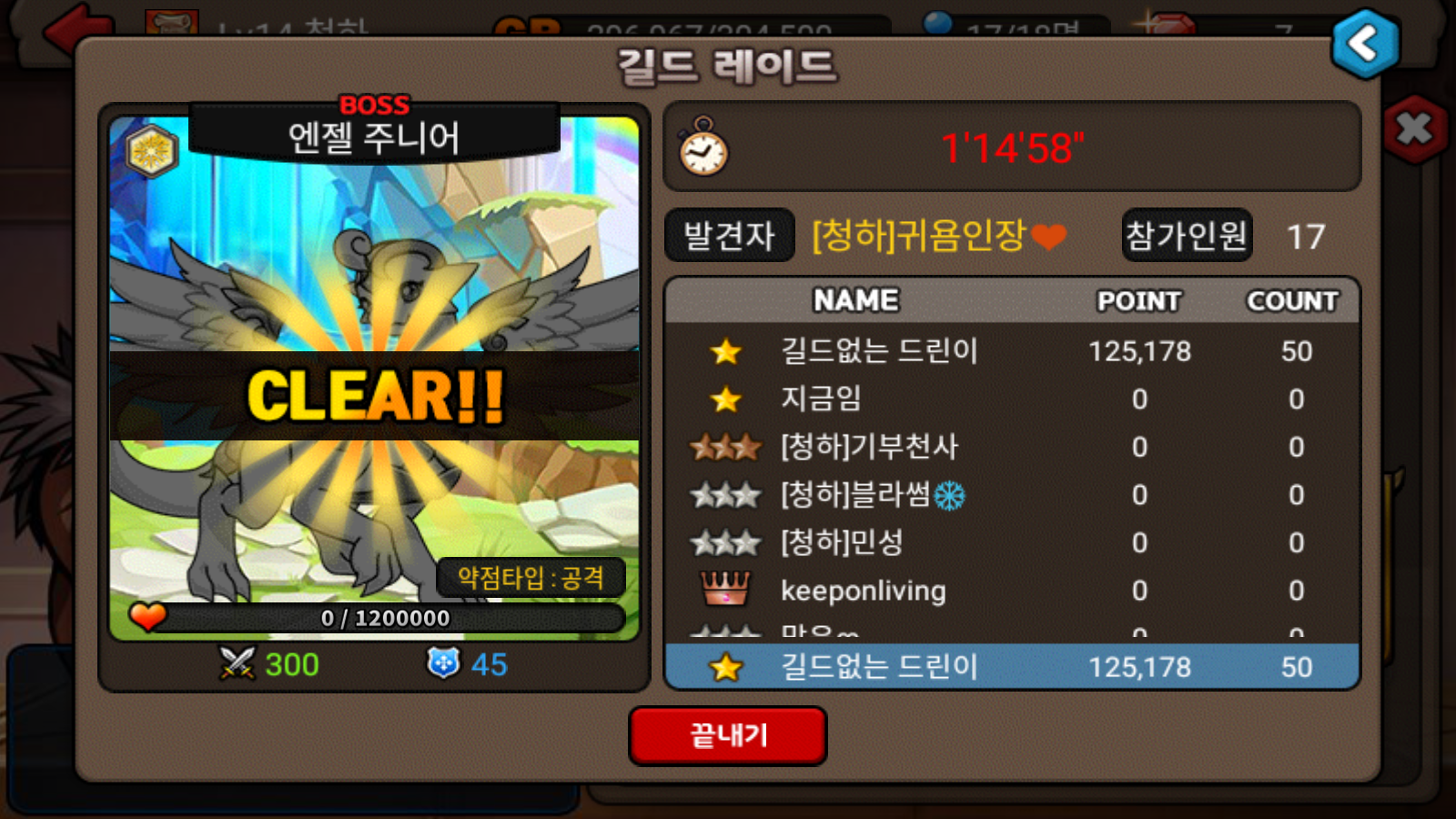 힘들다.... 길드레이드 같이 잡아주는 길원있으면 좋은뎅....