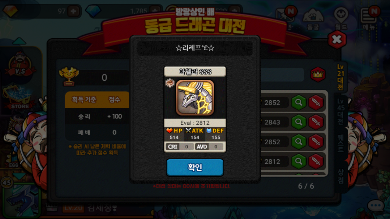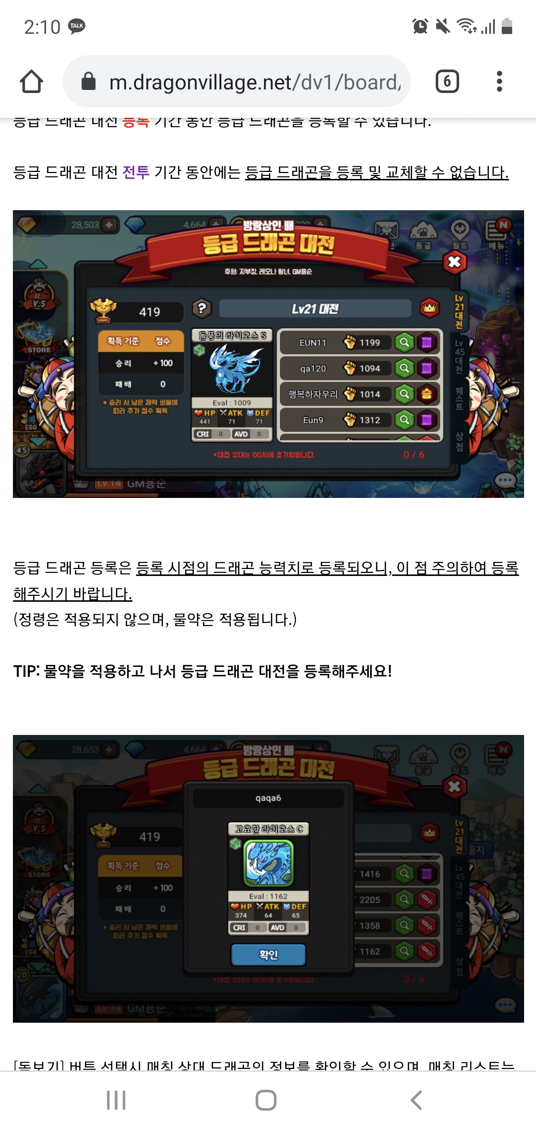 공지에서는 등록 시점의 드래곤 능력치로 등록된다고 되어 있고