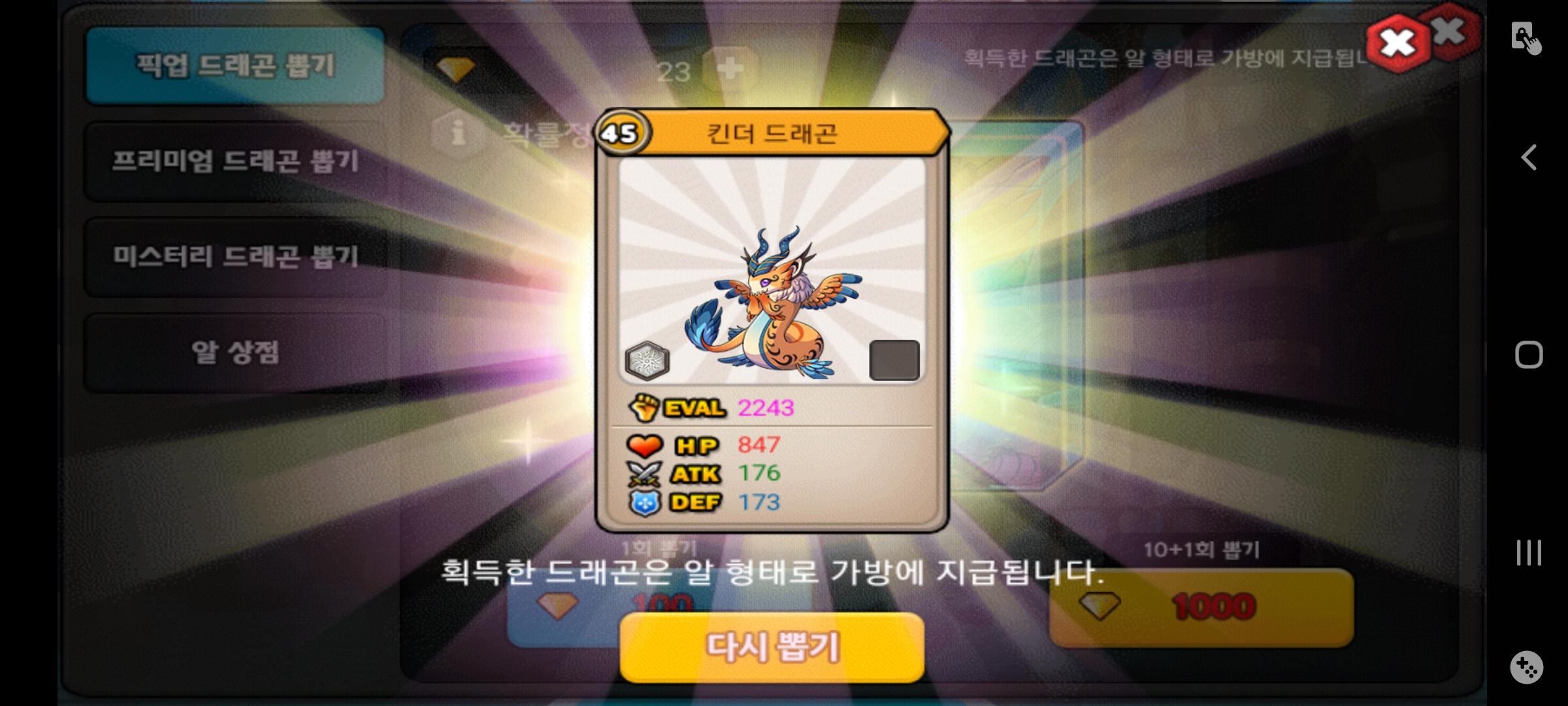 부계에 킨더가 또 걸렸는데 이놈을 진각을 목표로해서 강림, 진각 2마리 만드는게 나을까요? 아니면 알교하거나 파는데 나을까요?
