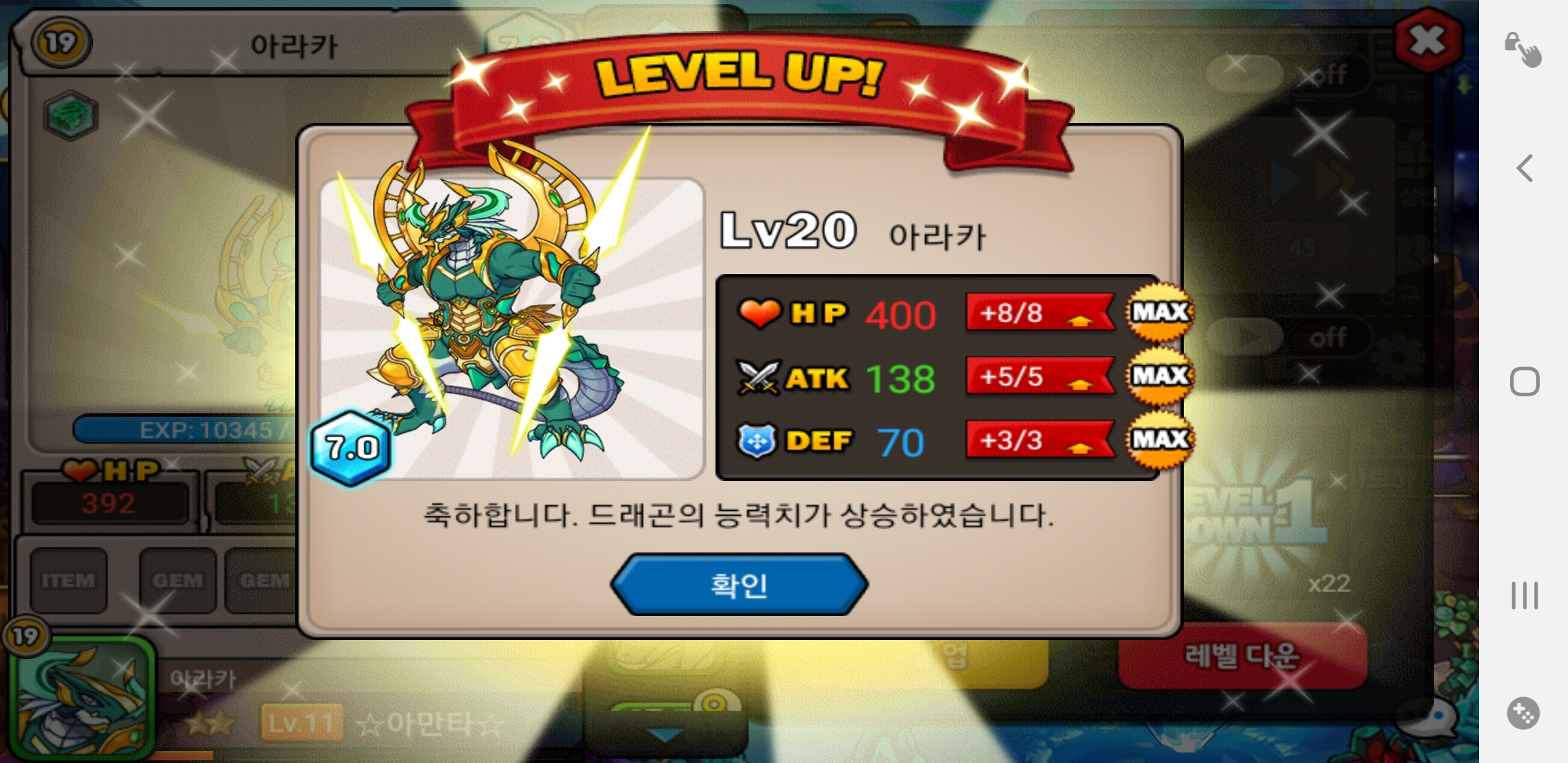 처음으로 일업안먹는 용 7.0 20렙달성