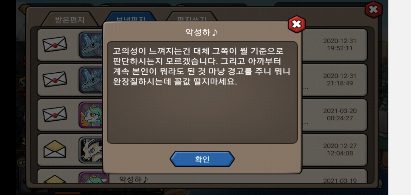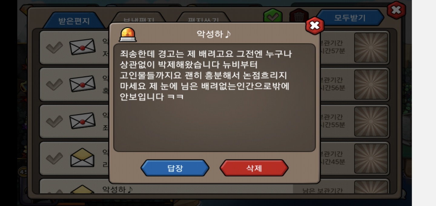 '경고 드립니다. 다음 번엔 박제합니다.' 같은 다분히 협박성이 짙은 말을 해놓고