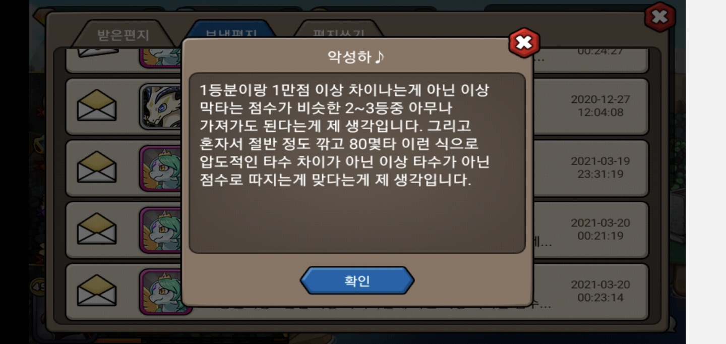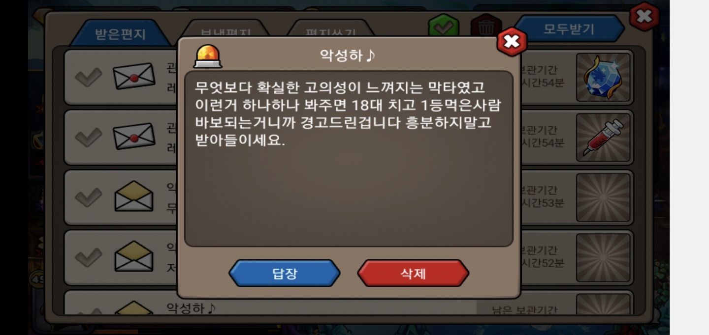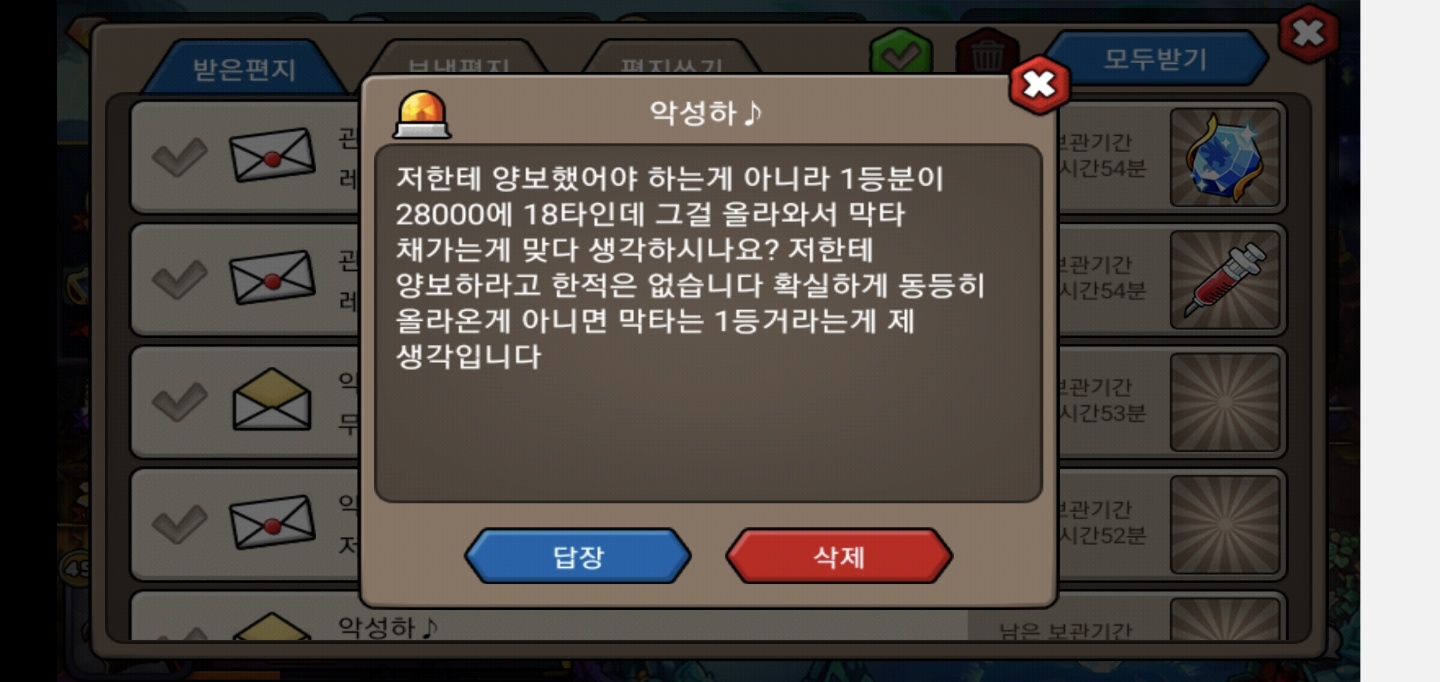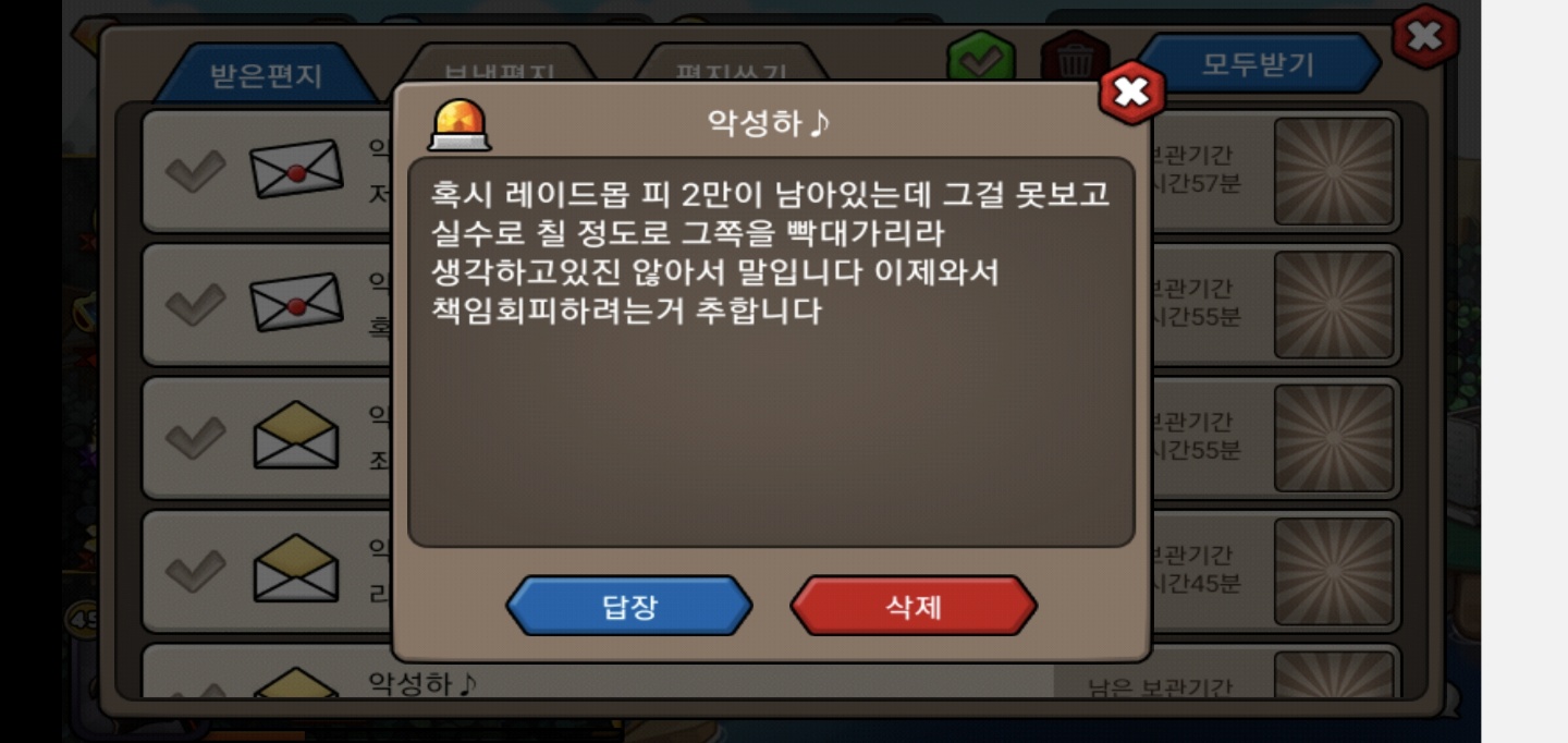 이후 자정쯤에 레이드를 소환하기 위해 접속하자 우편으로 2위분이