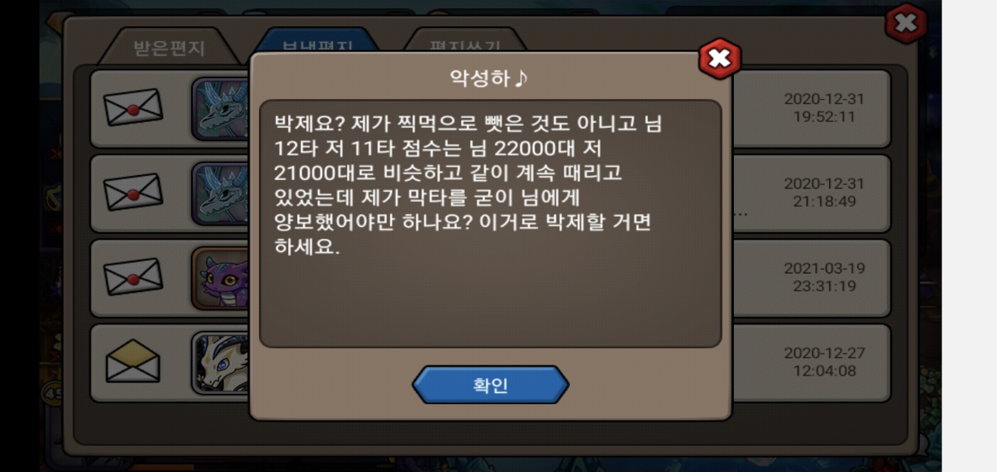 고의가 아니었다고 죄송하다고 하는데도 계속 '넌 무조건 고의적으로 막타를 먹은거다. 아니면 남은 체력을 못 본 니 눈이 장애냐?'