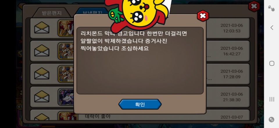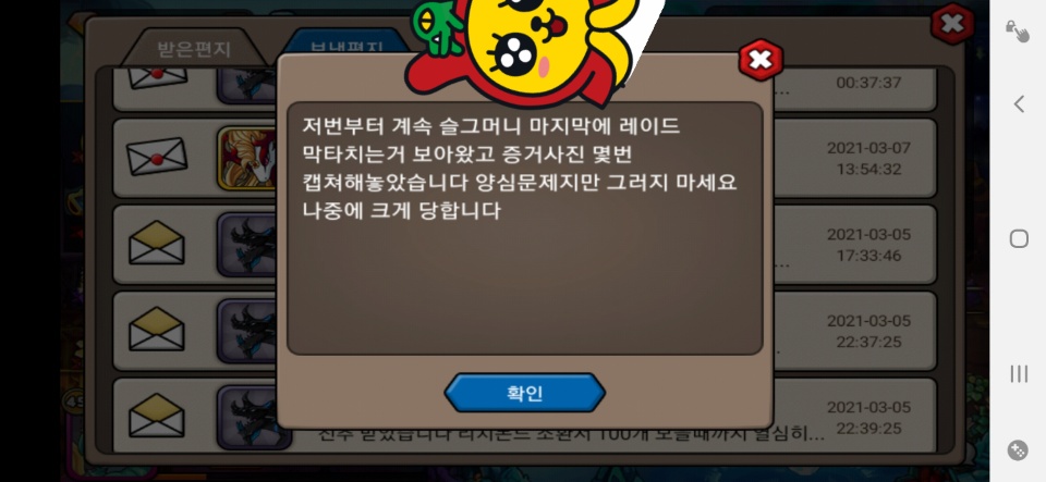 라는 마인드에서 인겜 편지를 먼저 드렸습니다