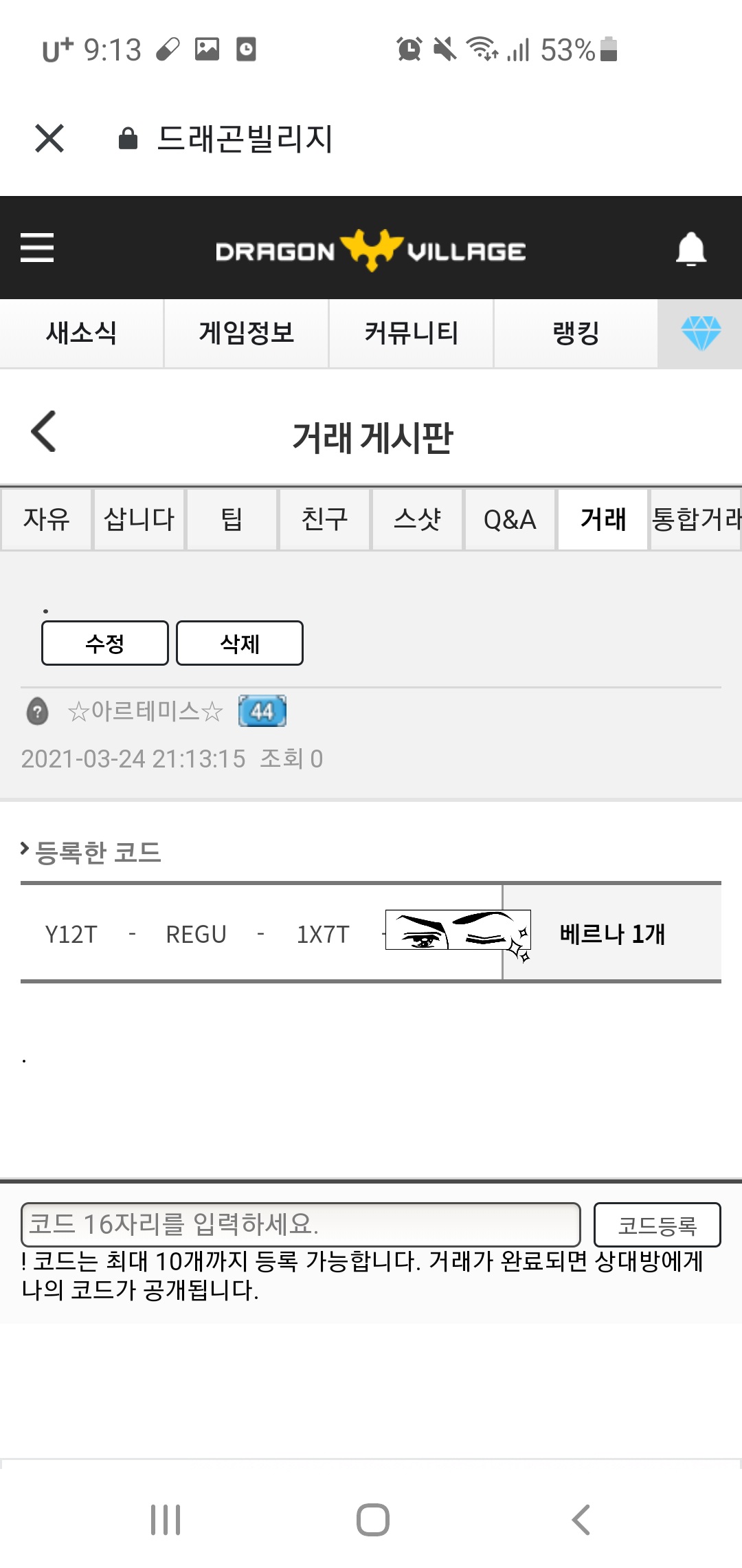해당 게시글을