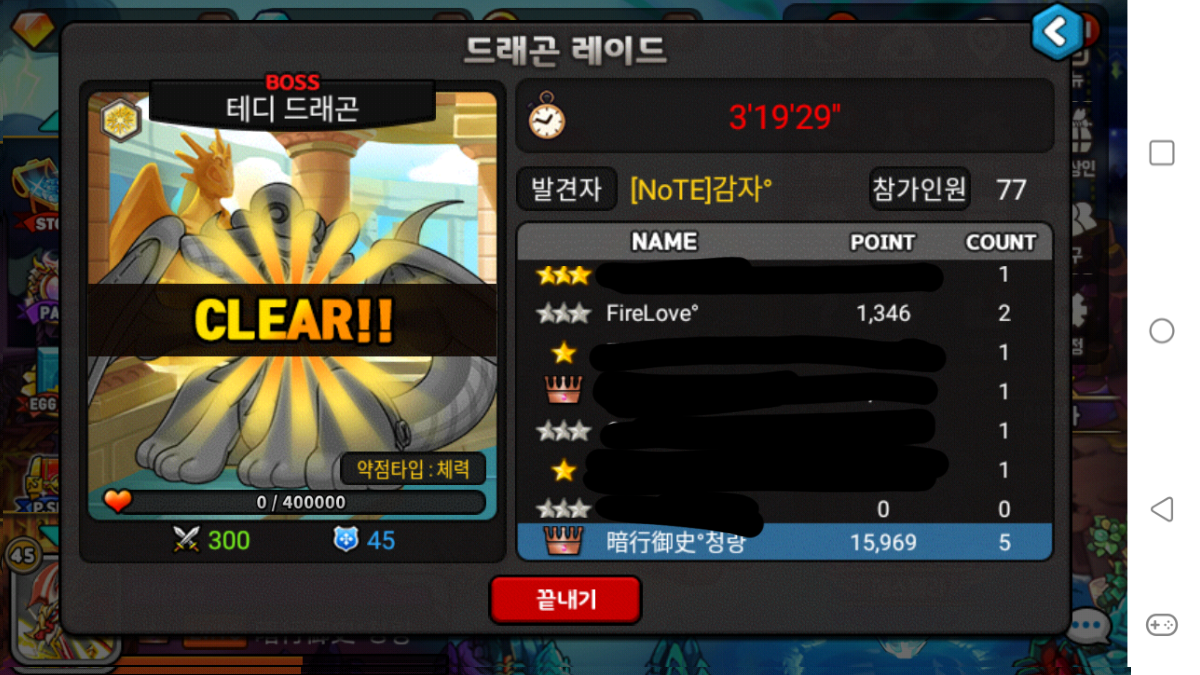 제가 텀을 잠시 두고 때리고 강종하고 왔더니 클리어?