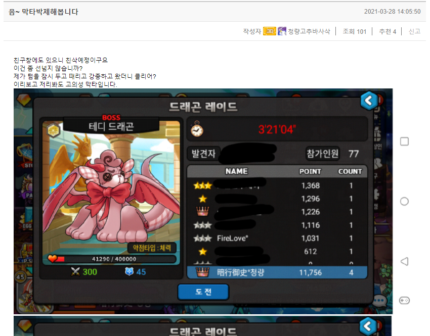 전 아직 드래곤 세마리를 들고가서 테디나 포포모 같은 용을 때려도 천점이 넘지 않는 경우가 있습니다.