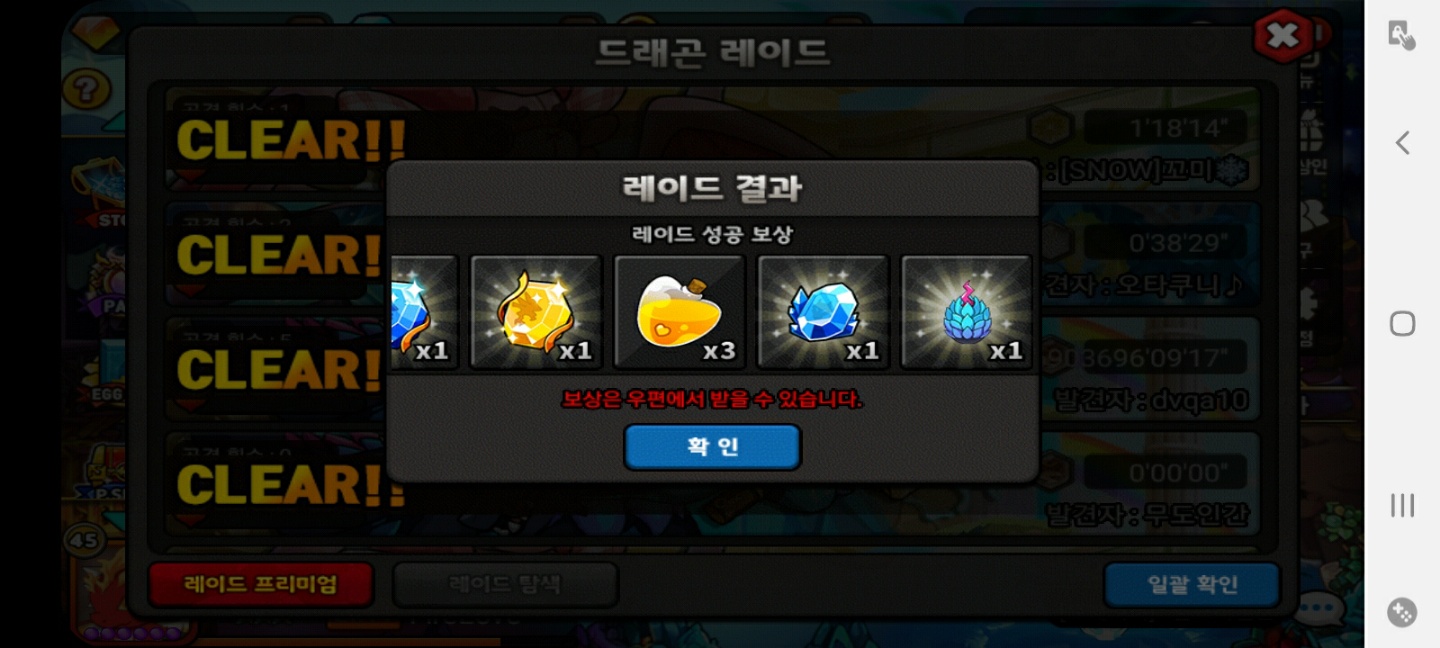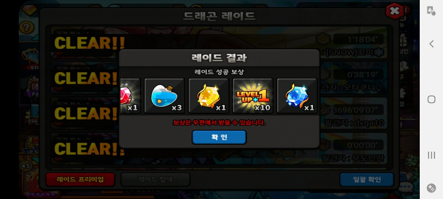 나머지 사진은 레이드 약 10마리? 정도 잡은다음에 글을 썼듯이 일괄확인한 사진입니다.
