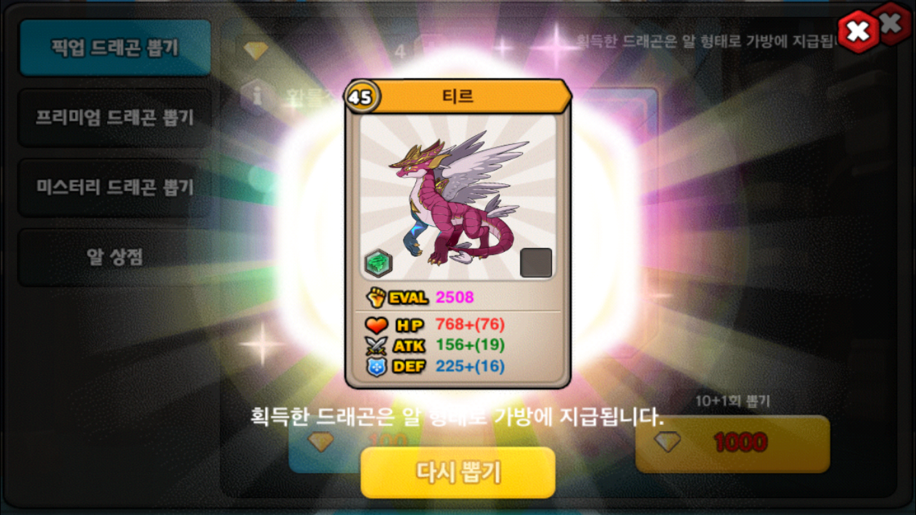 픽업뽑기 결과