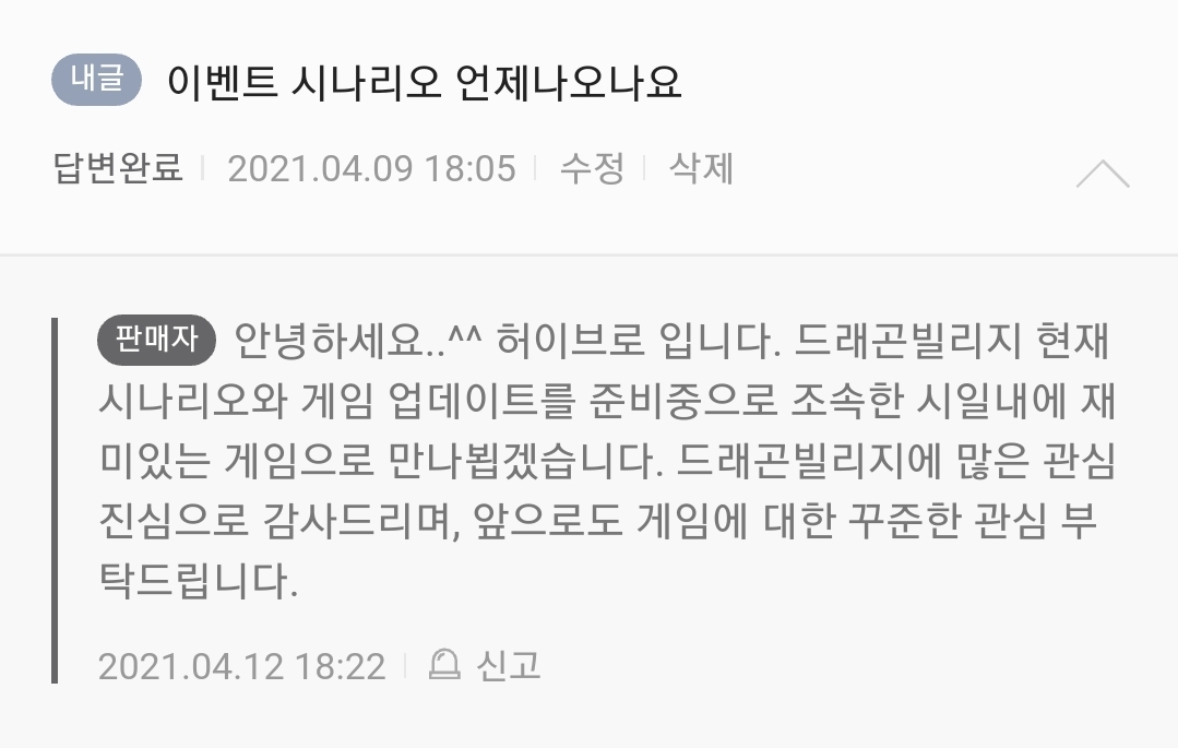 하브 피셜) 시나리오 이벤 준비중이다