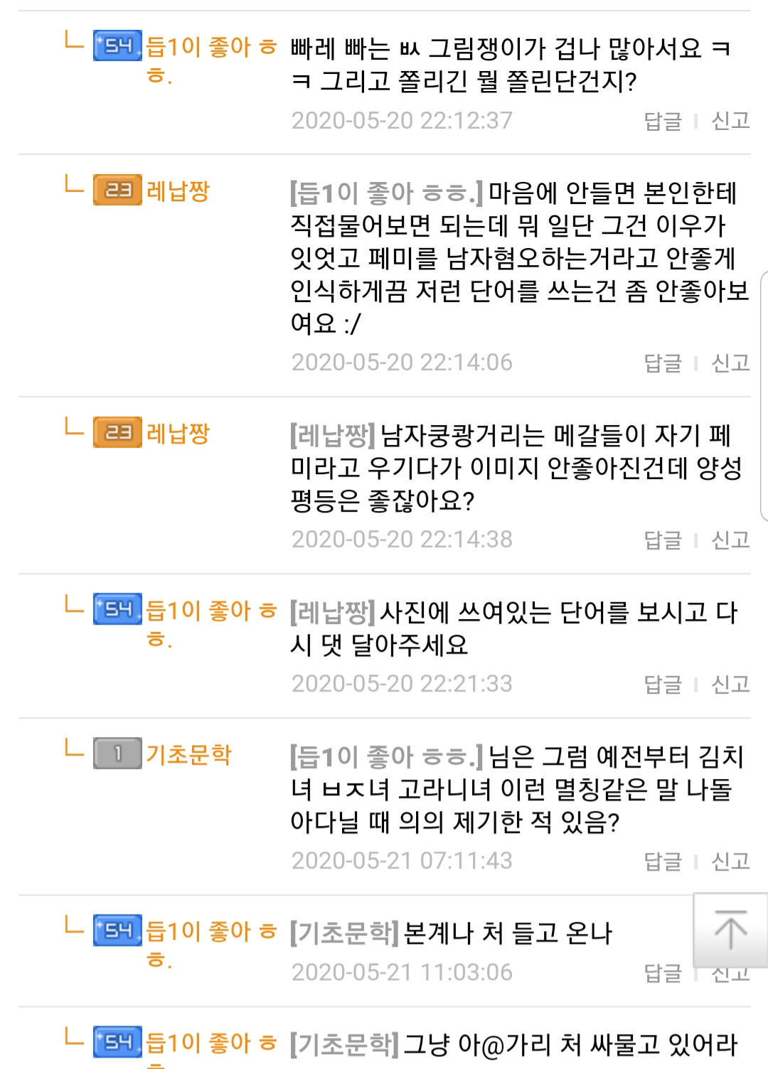 ....? 틀사신한테는 왜 그런말안하시나요!! 본인이 그렇게싫어하는 일베용어잖아요! 그리고 ㅂㅅ 페미~새끼라고 한 댓글은 자유게시판에 박제글 올라가서그런지 지우셨는데 정말 추잡ㅎㅏ네요.