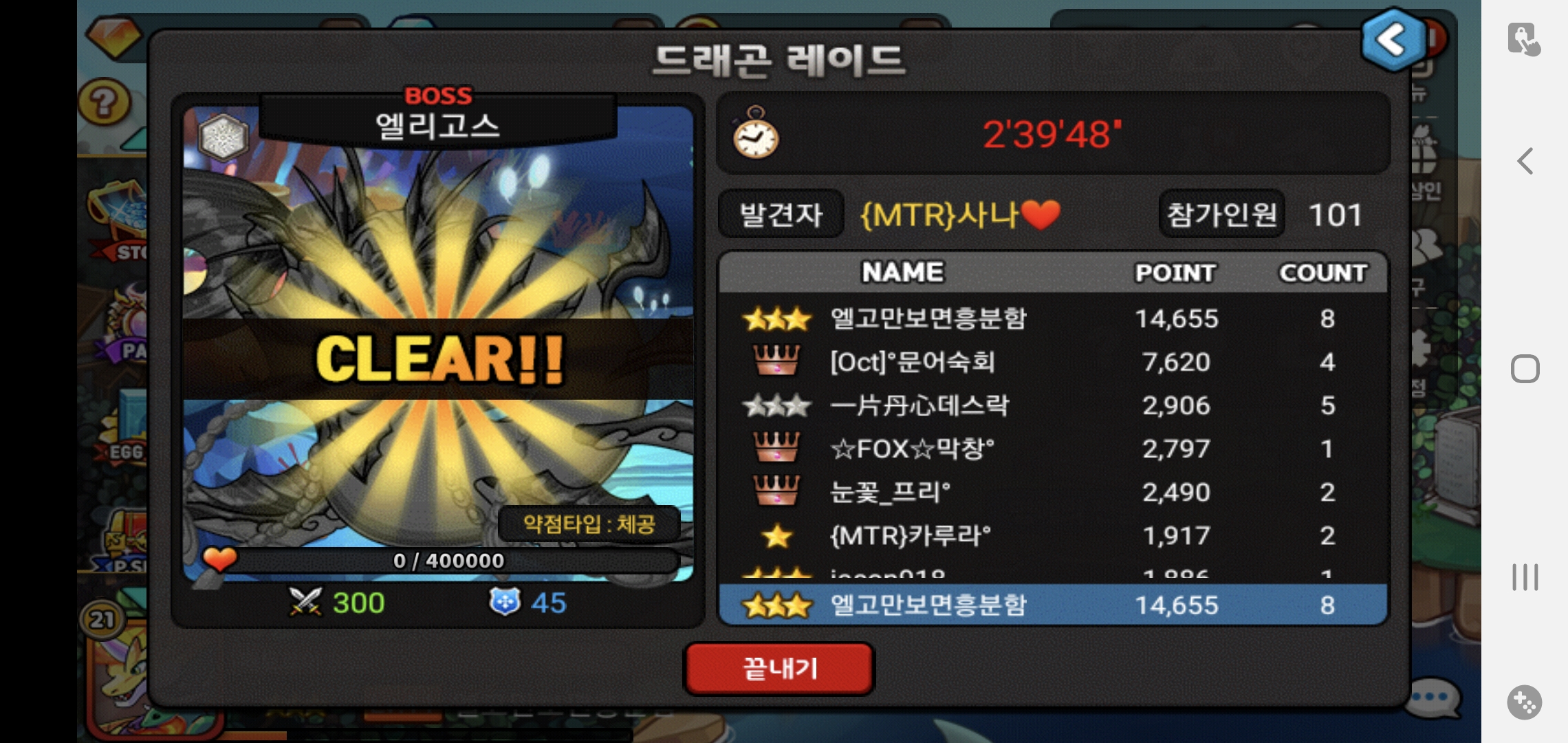 누군지 모르겠지만 분명 2명 중 1명이 피 10000정도 남은거 대기 후 고의로 막타쳤는데 끝까지 모르쇠 시전 ㅋㅋ..