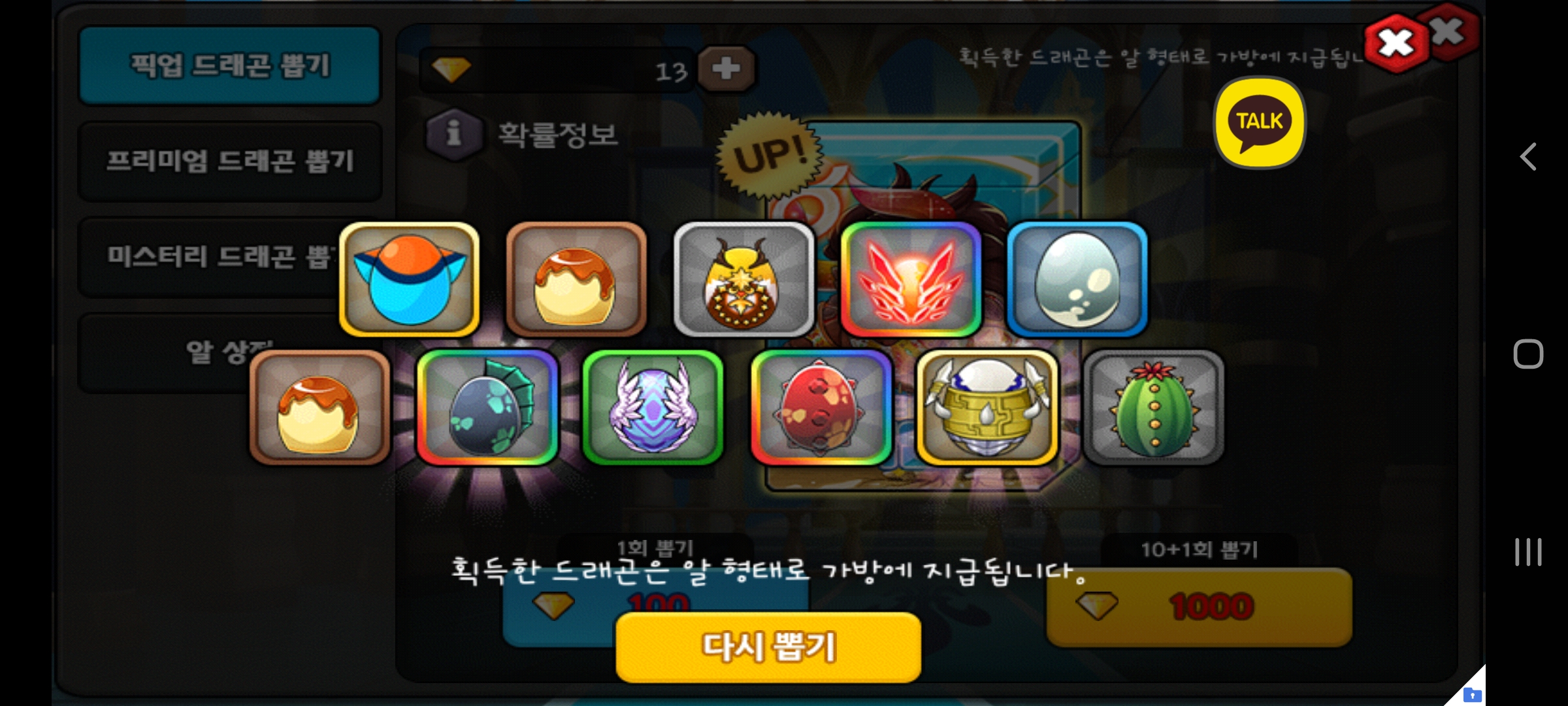 출석보상 10연뽑