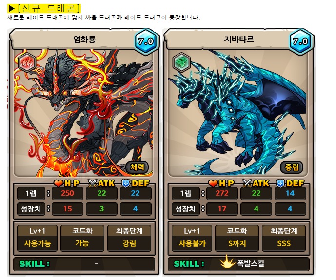 지바타르에 맞서는 신규용이라는데.... 제 생각은 서로 맞선다면 최소 지바타르 레이드 약점 타입이 체방이면 염화룡도 체방+ 속성상성이나 아니면 속성이랑 다 같게해서 비등비등하게 해야지 맞서는 용이 되지 않을까 싶거든요? 저만 그렇게 생각하나요...?