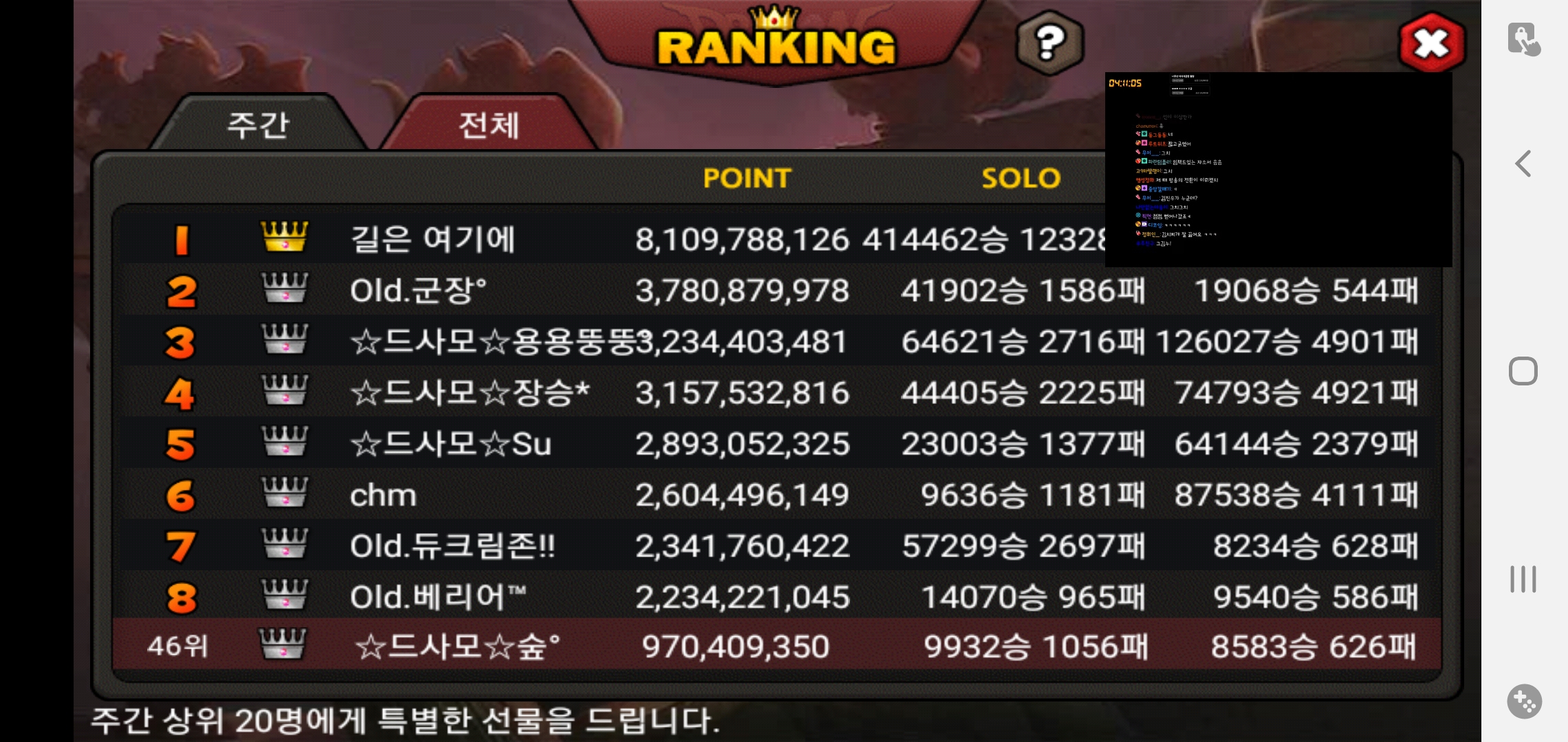 인겜 순위로는 46위....홈피랑 인겜이랑 다른게 이유가 있는건가요??