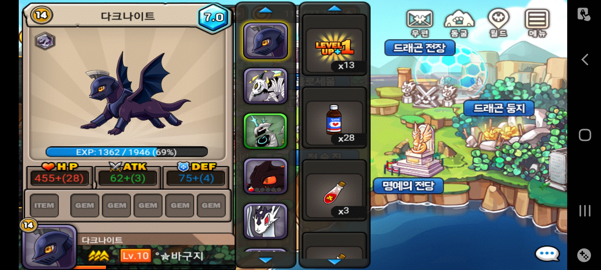 오늘 받은 1000다이아로 14렙을 찍었다