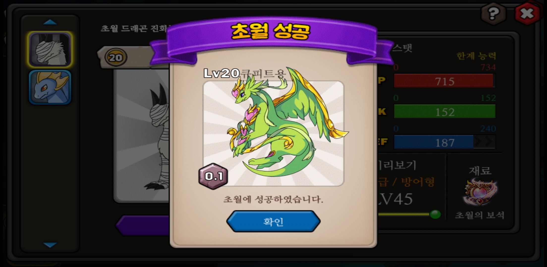 초정 넘치는 부계들로 대충 용 키워보려 하는데 가장 마음에 들었던 큐피트..