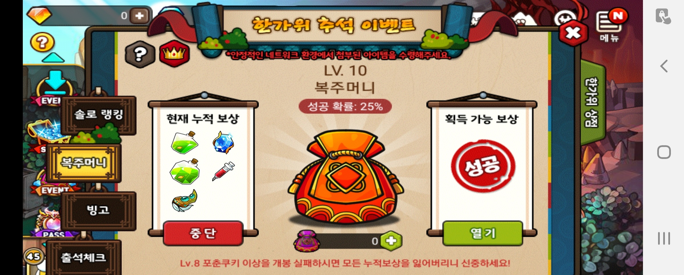 포춘쿠키는 8렙이상 개봉실패하면 사라지는데..