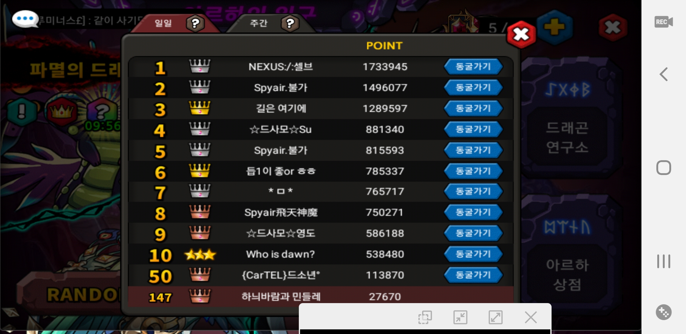 순간 2워 5위 닉네임 같은거보고 물음표 띄웠네요 ㅋㅋㅋㅋ