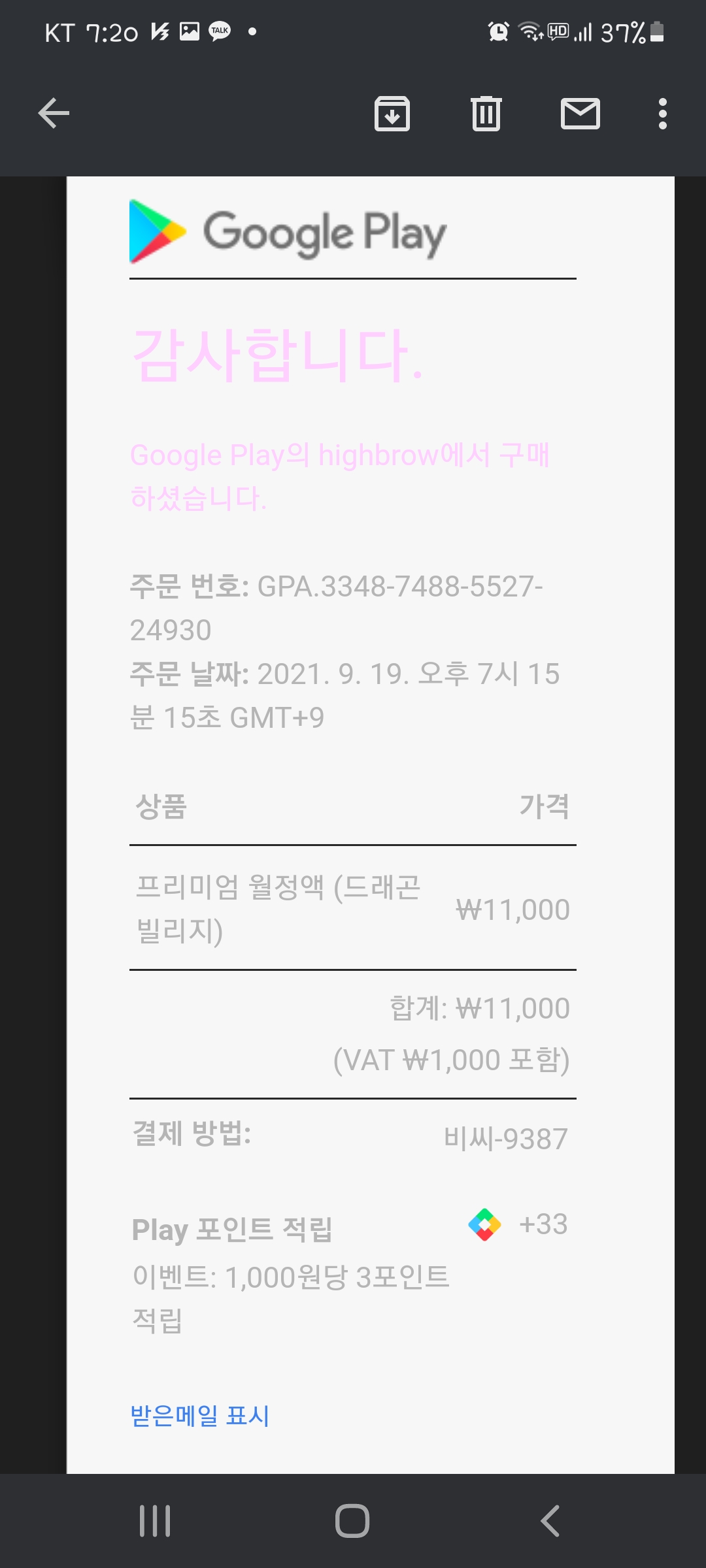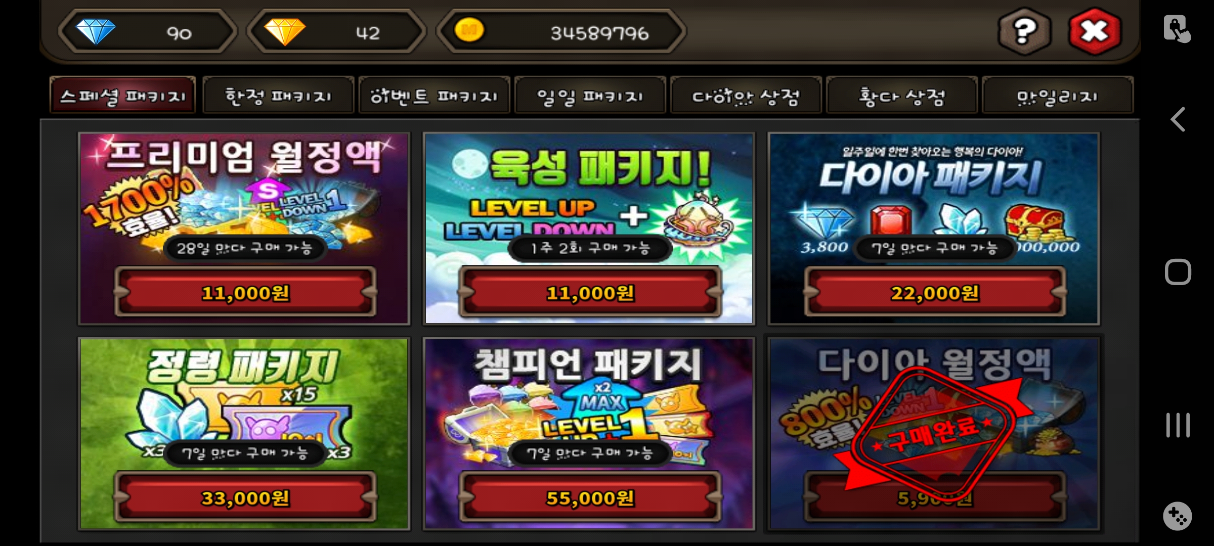 프리미엄 월정액과 다이아 월정액을 구매했는데...