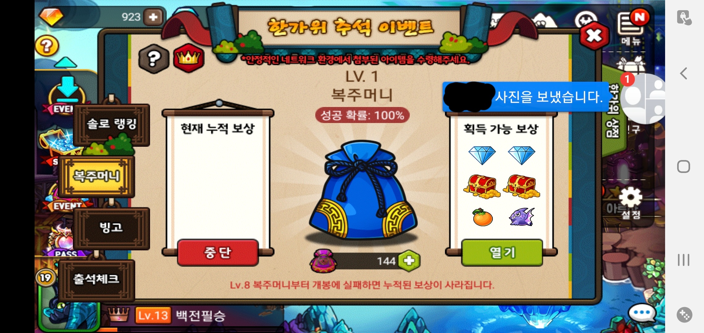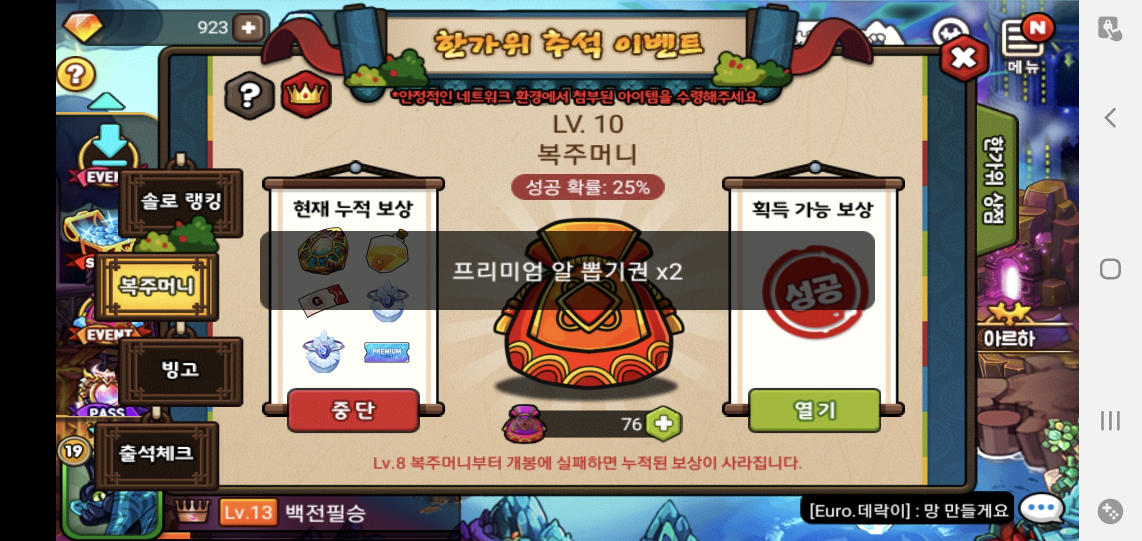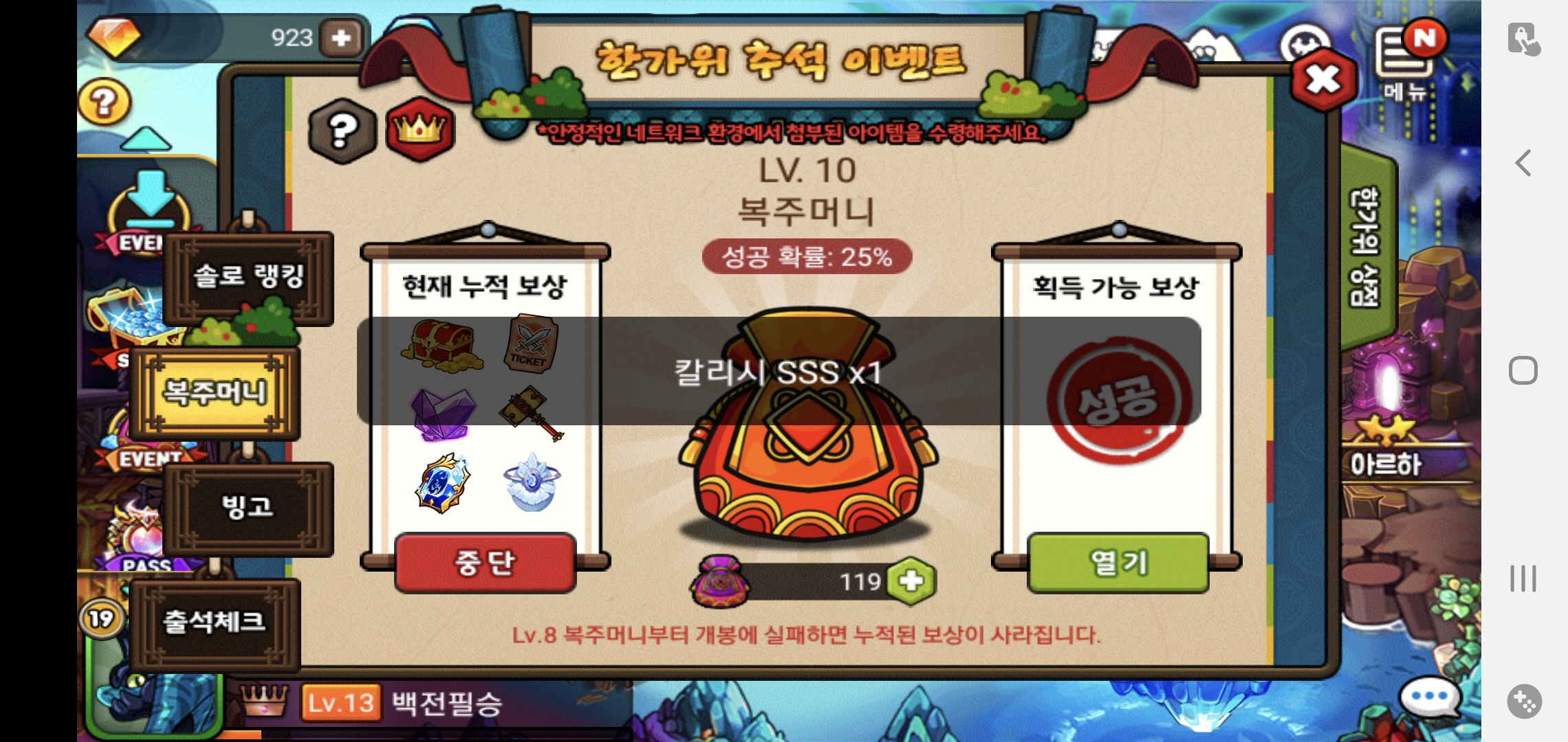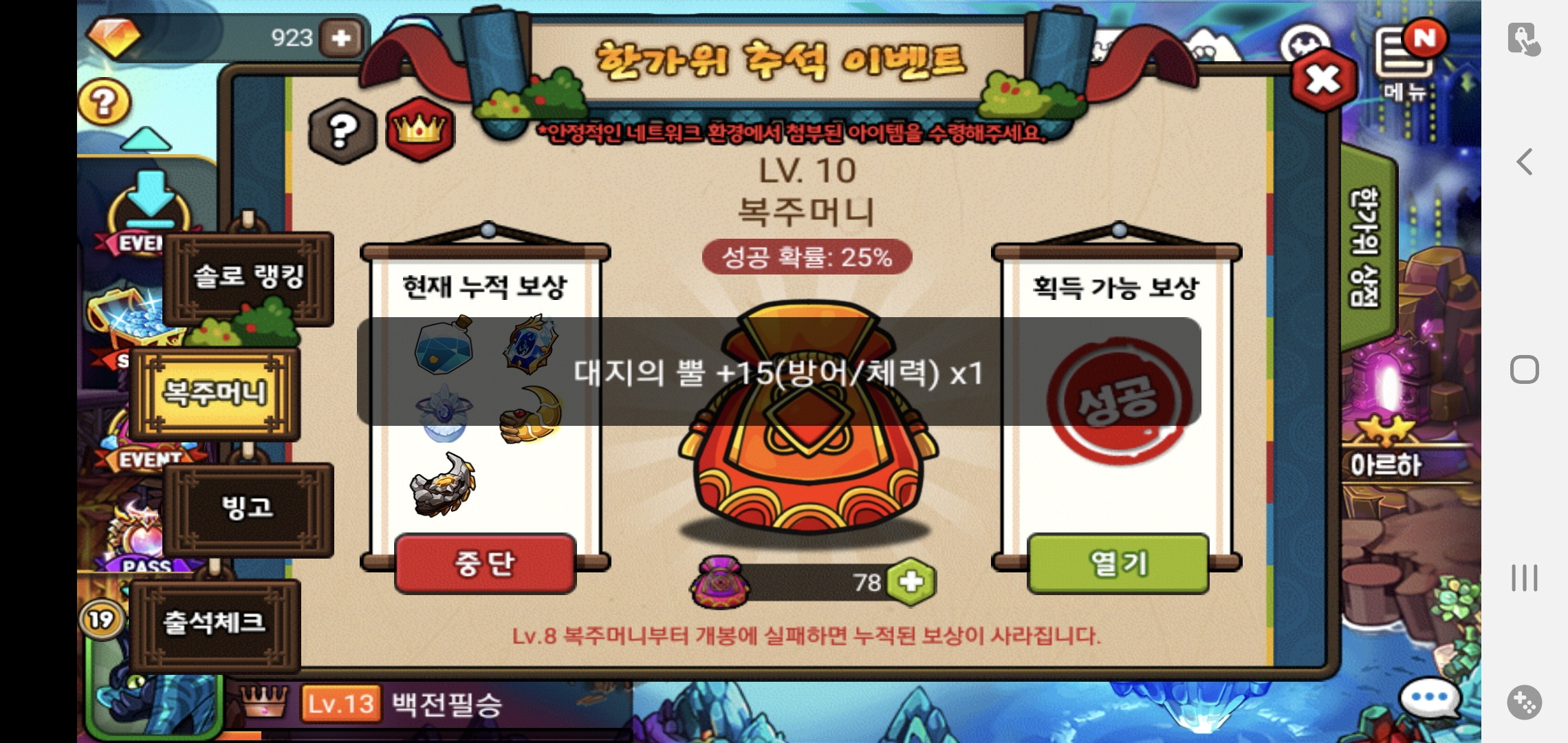 그래도 무료로 준 복주머니에서 10단계 3번 가고