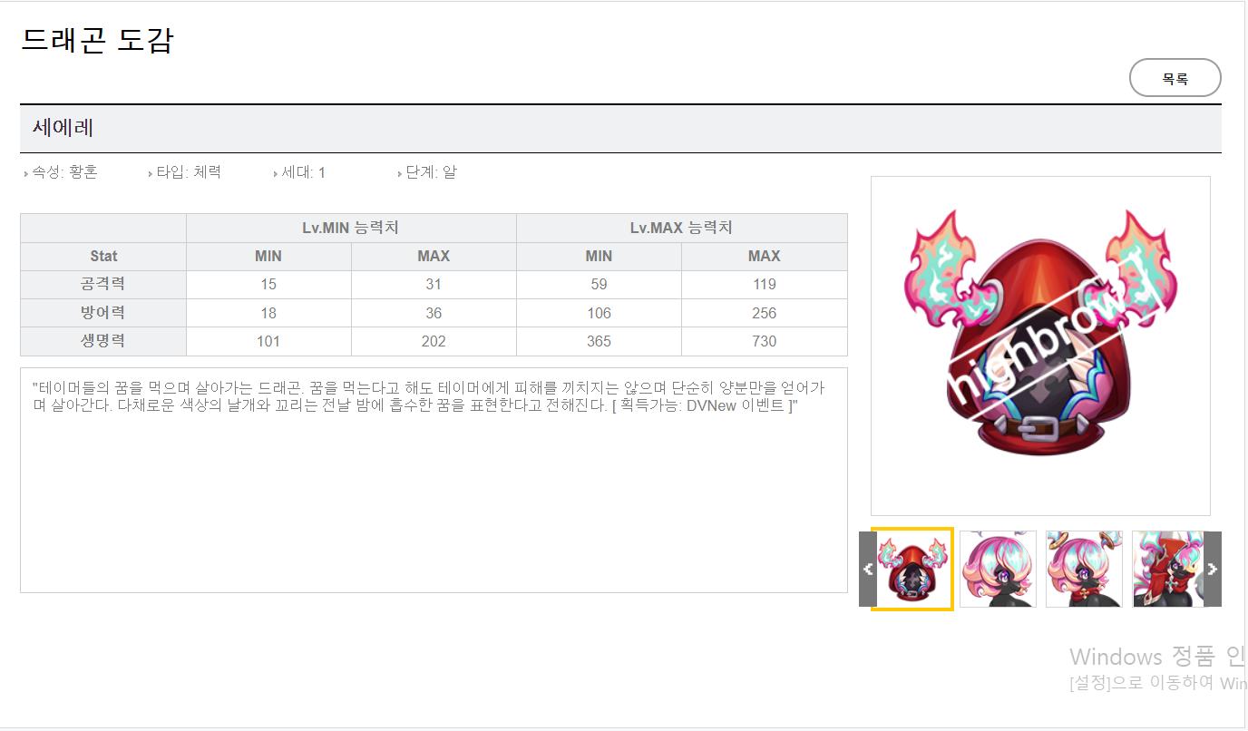 드래곤 도감 세에레 오류