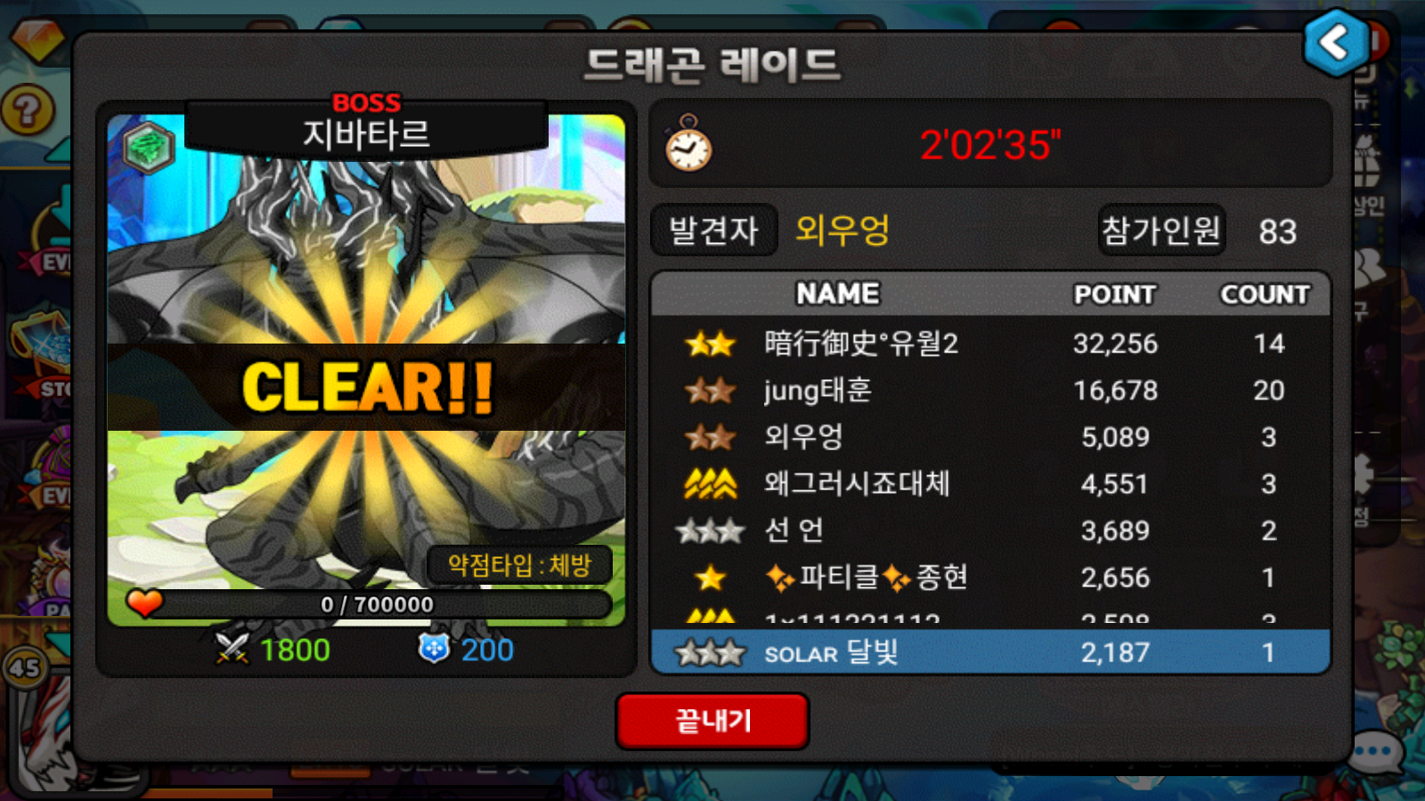 유월님 레이드 막타 죄송합니다.