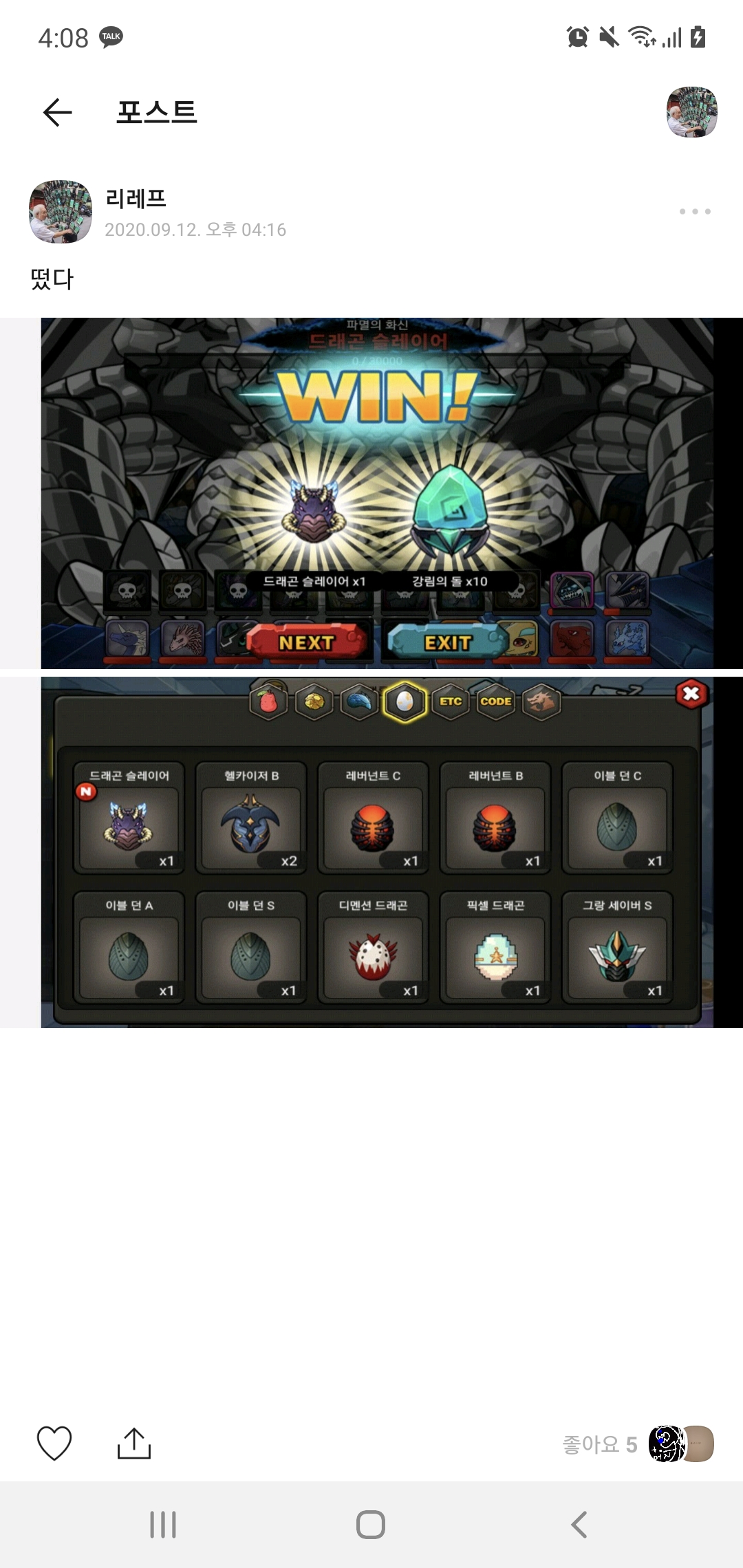 남들보면 500~600클당 하나씩은 먹던데